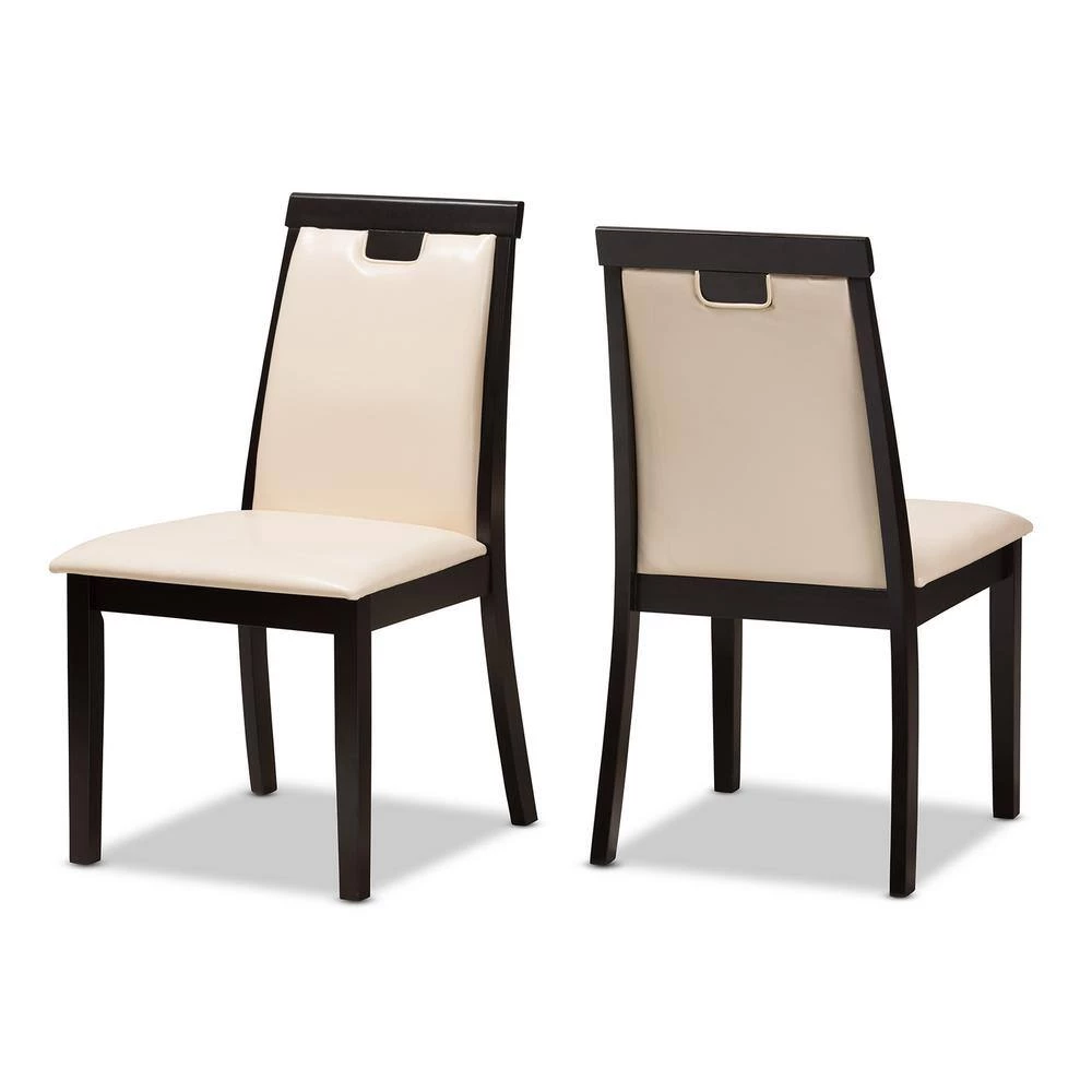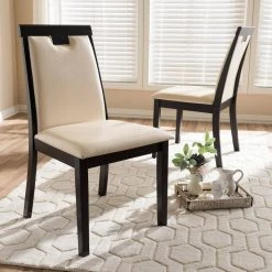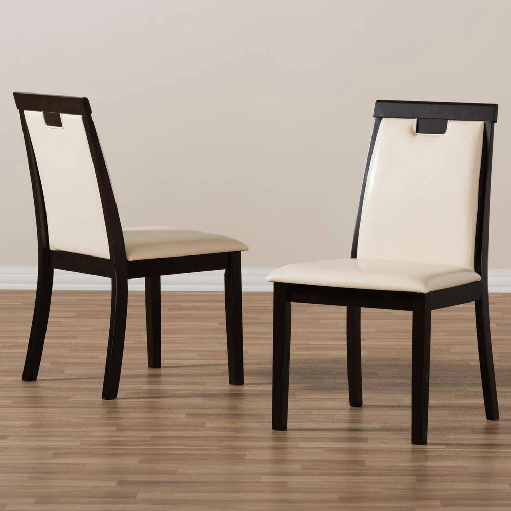 The Evelyn dining chair set embodies stylish classic design, clean straight lines and smooth faux leather upholstery. With flawless simplicity, its suitable for any dining room. Solid rubber wood construction guarantees a good amount of years to come. Foam-padded seat maximizes comfort and makes it ideal for extended seating. So sit back and enjoy those long dinners and conversations with your friends and family. Made in Malaysia, the Evelyn dining chair requires assembly.