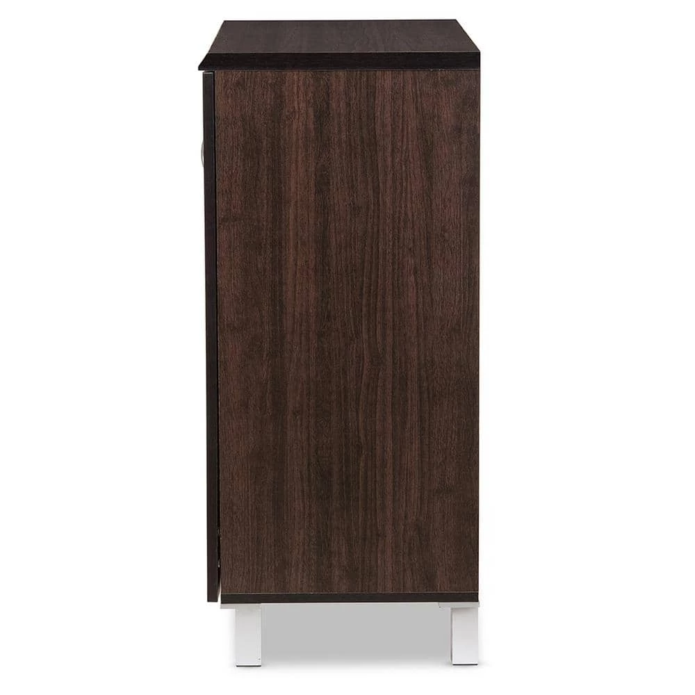 Need additional storage for your home office, entryway or living room? With its simple, versatile design in a classy, easy-to-style finish, the Excel Sideboard Storage Cabinet embraces a natural look of minimalist elegance for an effortless decor update. Revamp the furniture setting of your living space with the Excel Sideboard Storage Cabinet, a beautiful space-saving solution made of high quality engineered wood veneer dressed in practical dark brown espresso finish and accessorized with silver metal handles and PVC legs. Equipped with two large shelving spaces behind the two doors, the Excel Sideboard Storage Cabinet will help you de-clutter your home office, entryway and living room in an appealing and very stylish manner. Made in Malaysia, the cabinet requires assembly.