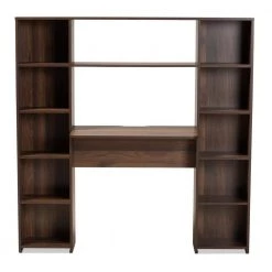 Adorn your home office or workspace with the handy design of the Ezra desk. Made in Malaysia, the Ezra is constructed from sturdy wood displaying a warm walnut brown finish. The desk is outfitted with ten side storage compartments, as well as an overhead shelf to display decorations and store essential items. Requiring assembly, the Ezra features a spacious rectangular tabletop to maximize room for electronic devices and accessories. A helpful design that radiates contemporary charm, the Ezra desk modernizes any space.