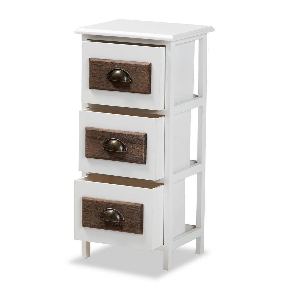 Add a handy accent of modern design to your space with the Fanning storage unit. Made in China, this multipurpose piece comprised of a sturdy wood frame adorned with metal accents. Three drawers add convenient storage to your home while wood embellishments create visual texture and depth. Requiring assembly, the Fanning features smooth metal drawer handles for a sleek, industrial touch. The streamlined frame allows the piece to blend well with any interior layout, making the Fanning storage unit a worthwhile addition to the modern home.