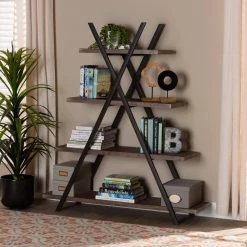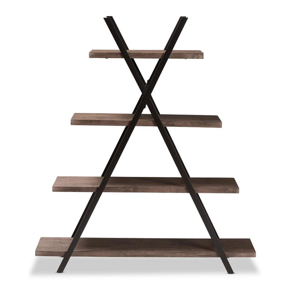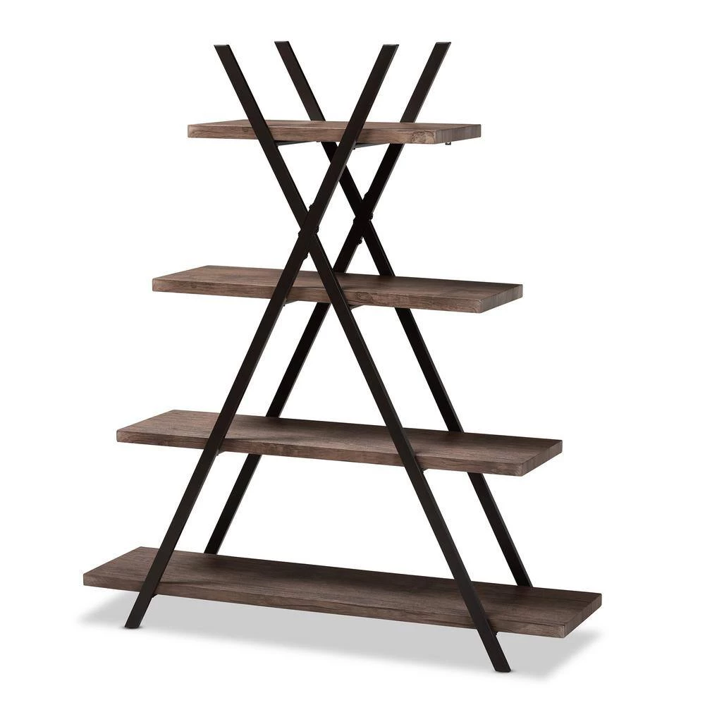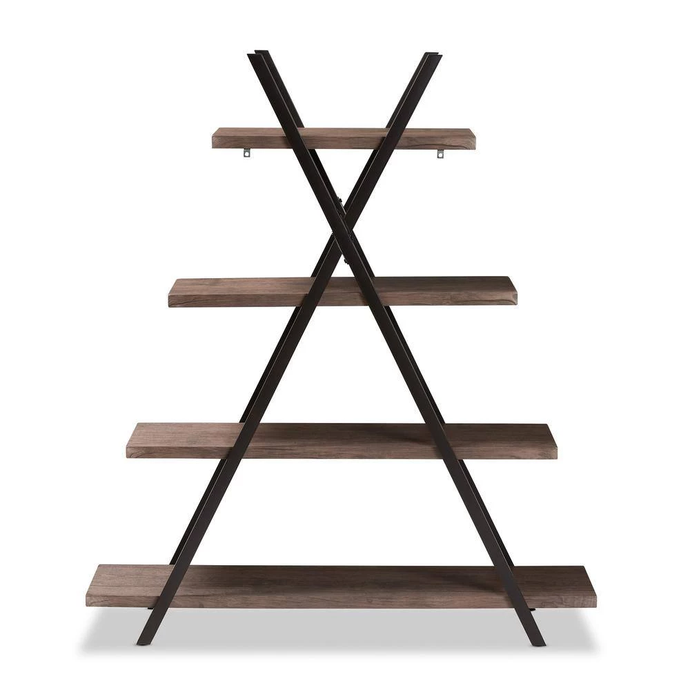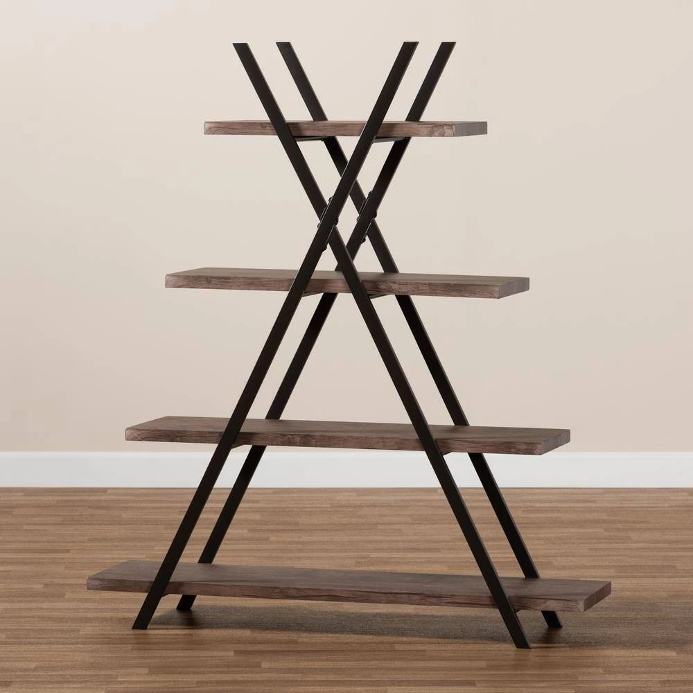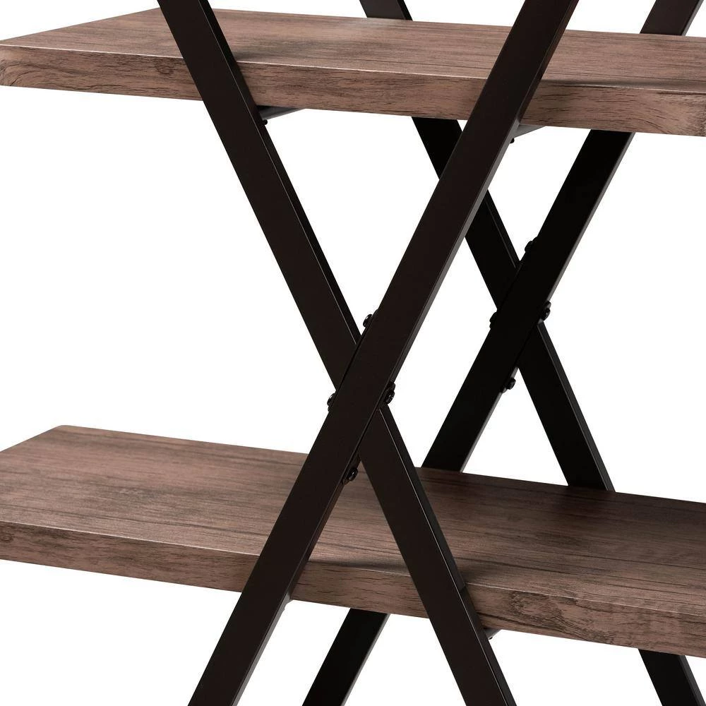Enhance your book collection by displaying it on the stylish Fiera shelf. Made in China, this wooden piece features rustic walnut finished shelves that complement the black metal frame. Four shelves, of varying lengths, provide ample display space and lend visual interest. The crisscross frame provides solid support and adds a cool, industrial vibe. Requiring assembly, the Fiera shelf livens up any living room or home office.