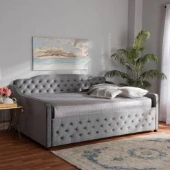 - Grey velvet upholstered