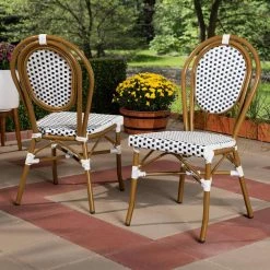 Bring the charm of the classic French bistro to your home with the Gauthier dining chair. Constructed from aluminum and coated in powder, the Gauthier features a high backrest that provides support and comfort. This stackable dining chair is designed for everyday use and is superbly suited for a deck, balcony or indoor space. Featuring a bamboo style frame with multi-color accents, the Gauthier is easy to coordinate with a wide range of decorative styles. The Gauthier dining chair is made in China and will arrive fully assembled.