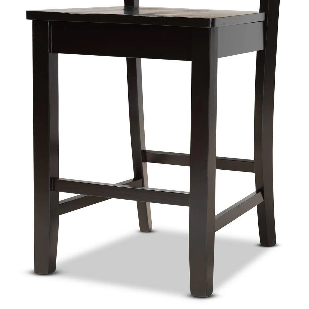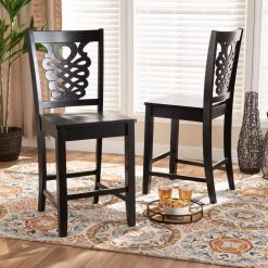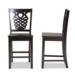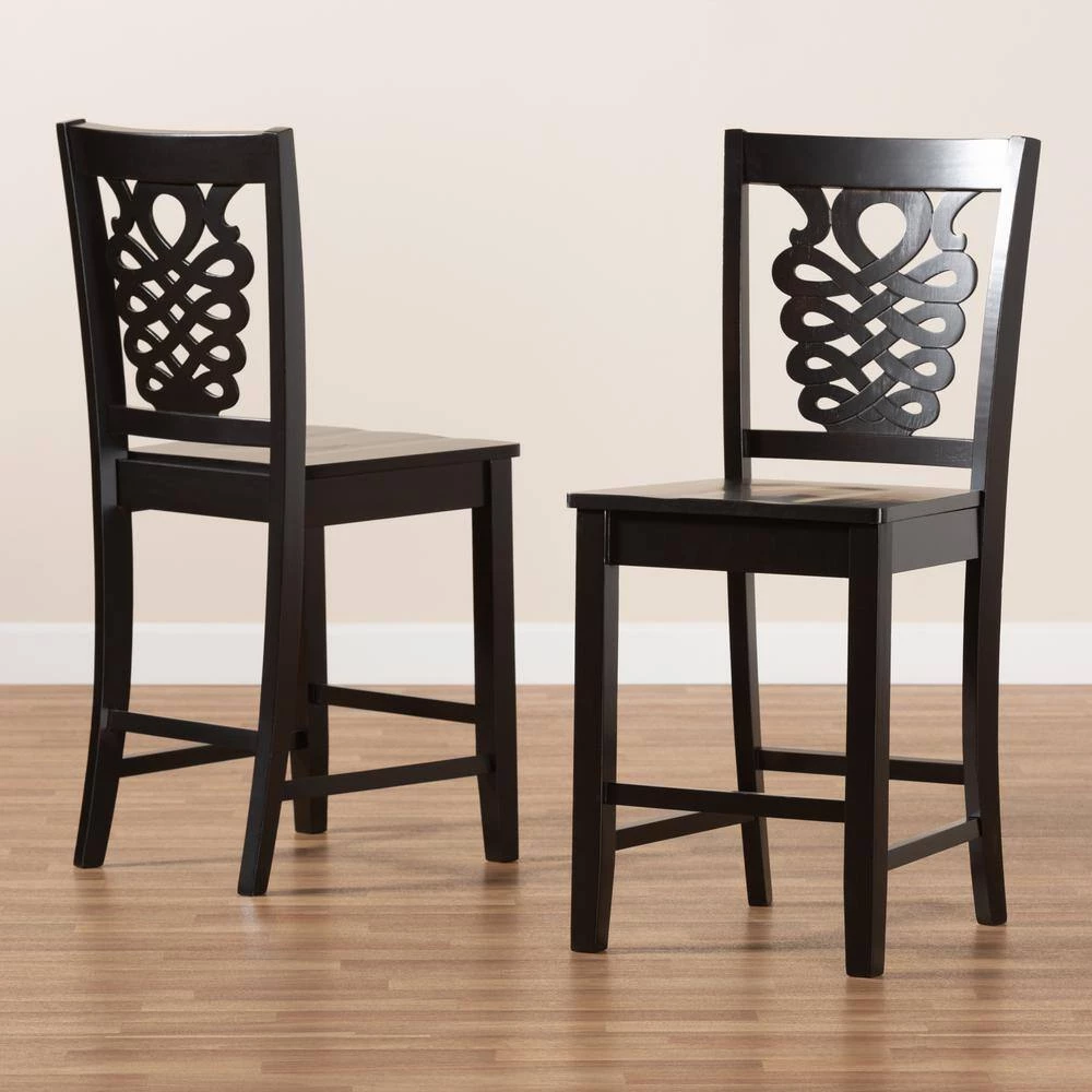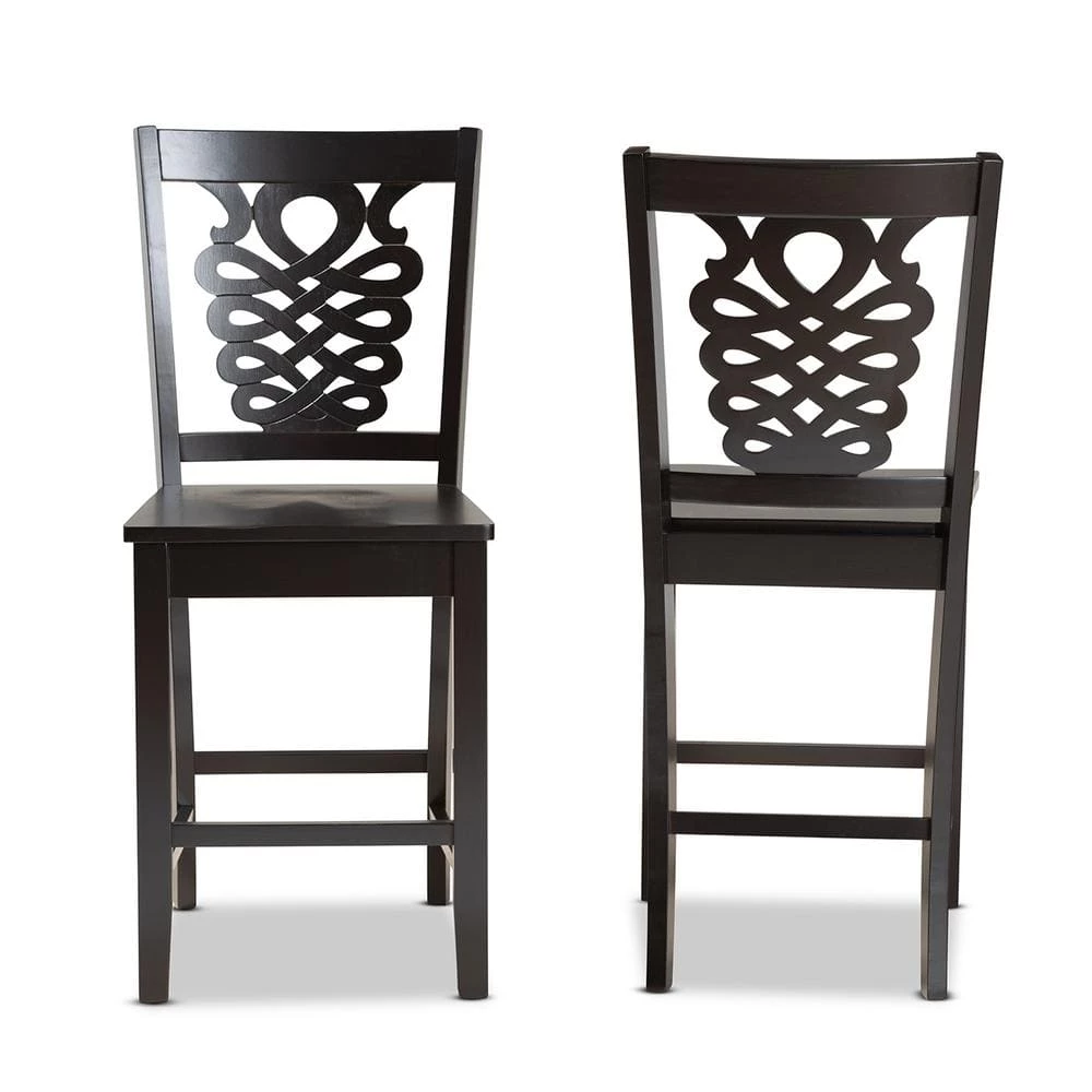 Imbue your dining space with the elegance of the finely crafted Gervais counter stool. Made in Malaysia, the Gervais is comprised of a sturdy wood frame showcasing a rich dark brown finish. A smooth scoop seat provides casual comfort. Requiring assembly, the backrest features a unique, intricate cut out design for enhanced visual appeal. Straight legs lend a touch of sleek, contemporary style, making the Gervais counter stool an excellent addition to the modern home.
