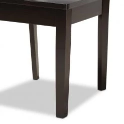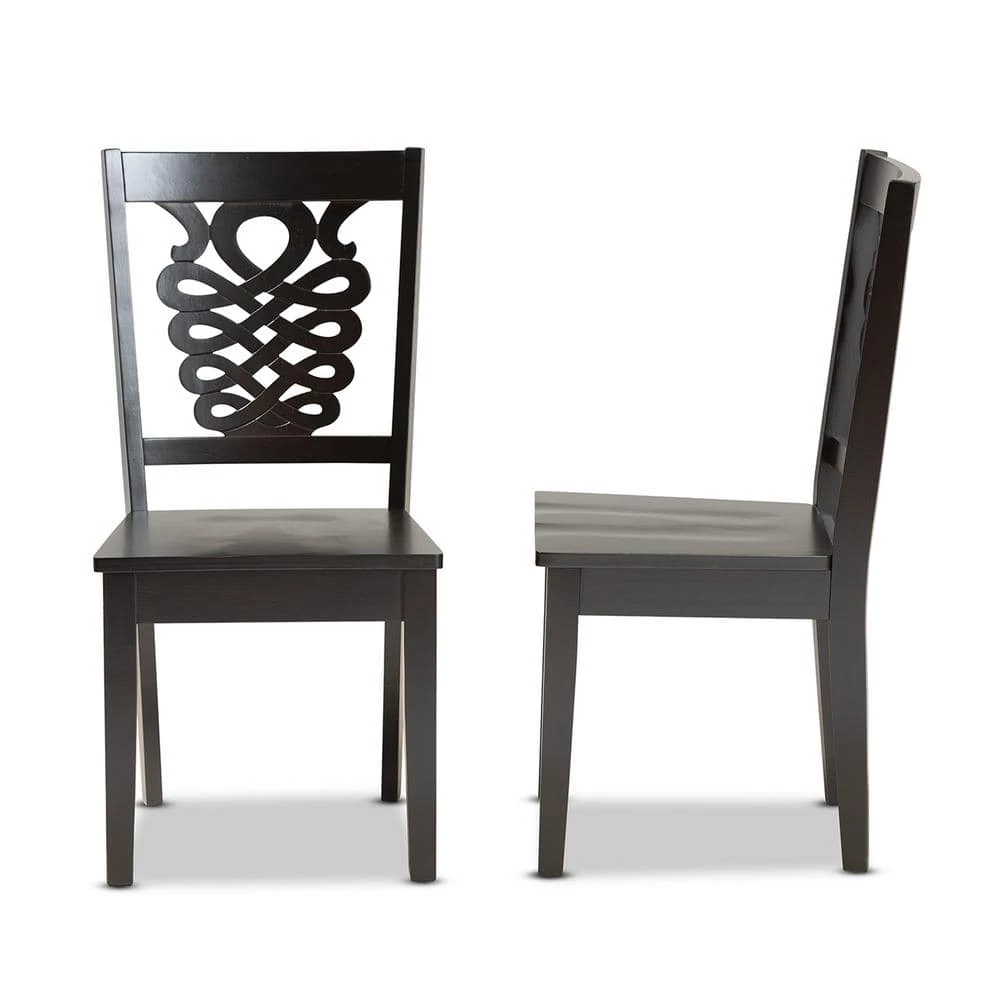 Imbue your dining space with the elegance of the finely crafted Gervais dining chair. Made in Malaysia, the Gervais is comprised of a sturdy wood frame showcasing a rich dark brown finish. A smooth scoop seat provides a casual and comfortable dining experience. Requiring assembly, the backrest showcases a striking geometric design for added visual appeal. Straight legs add a touch of sleek, contemporary style, making the Gervais dining chair an excellent addition to the modern home.