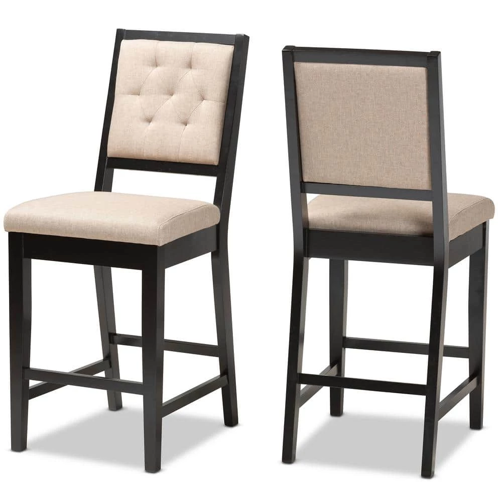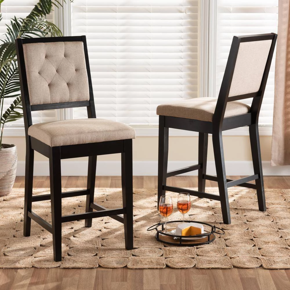 Add a touch of elegance to your home bar or lounge with the stunning Gideon counter stool. Made in Malaysia, this stool is constructed from solid wood. Its plush backrest and seat are upholstered in smooth fabric displaying a graceful diamond tufted design. Requiring assembly, the Gideon features a convenient footrest on each side for ergonomic comfort. A fantastic culmination of style and comfort, the Gideon counter stool is sure to elevate any occasion.