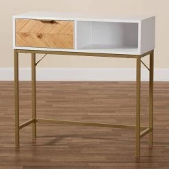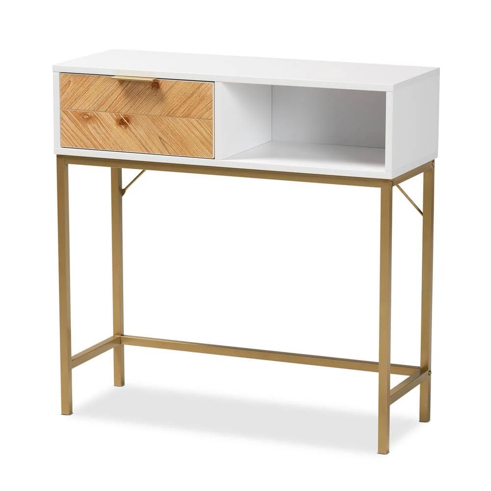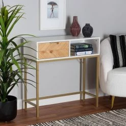 Steeped in contemporary glamour, the Giona console table uplifts the potential of any layout. Made in China, this stunning piece is comprised of a wood frame atop a solid metal base. The rectangular tabletop and open shelf serve as lovely display areas, while the drawer offers secure storage space. The Giona requires assembly and features a minimalist metal base for excellent stability and support in modern style. The wood grain lends visual texture, making the Giona console table a fantastic addition to any space.