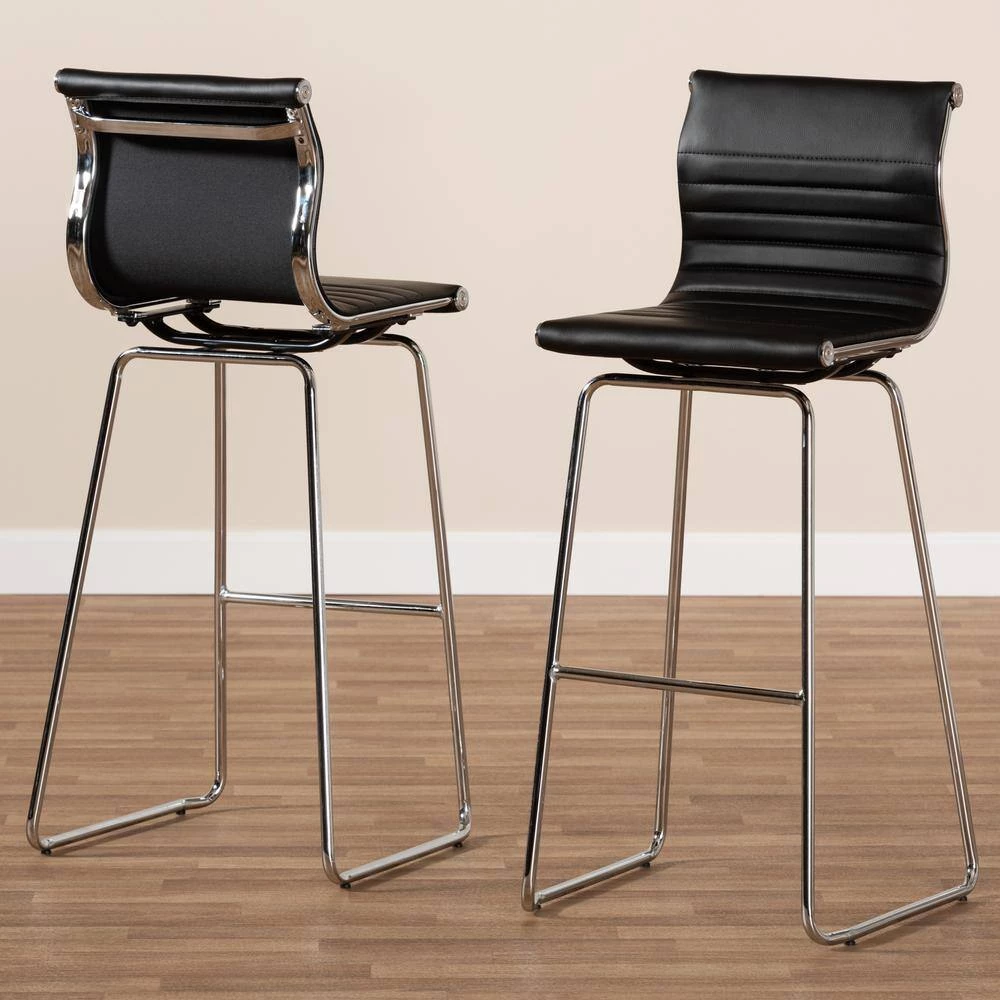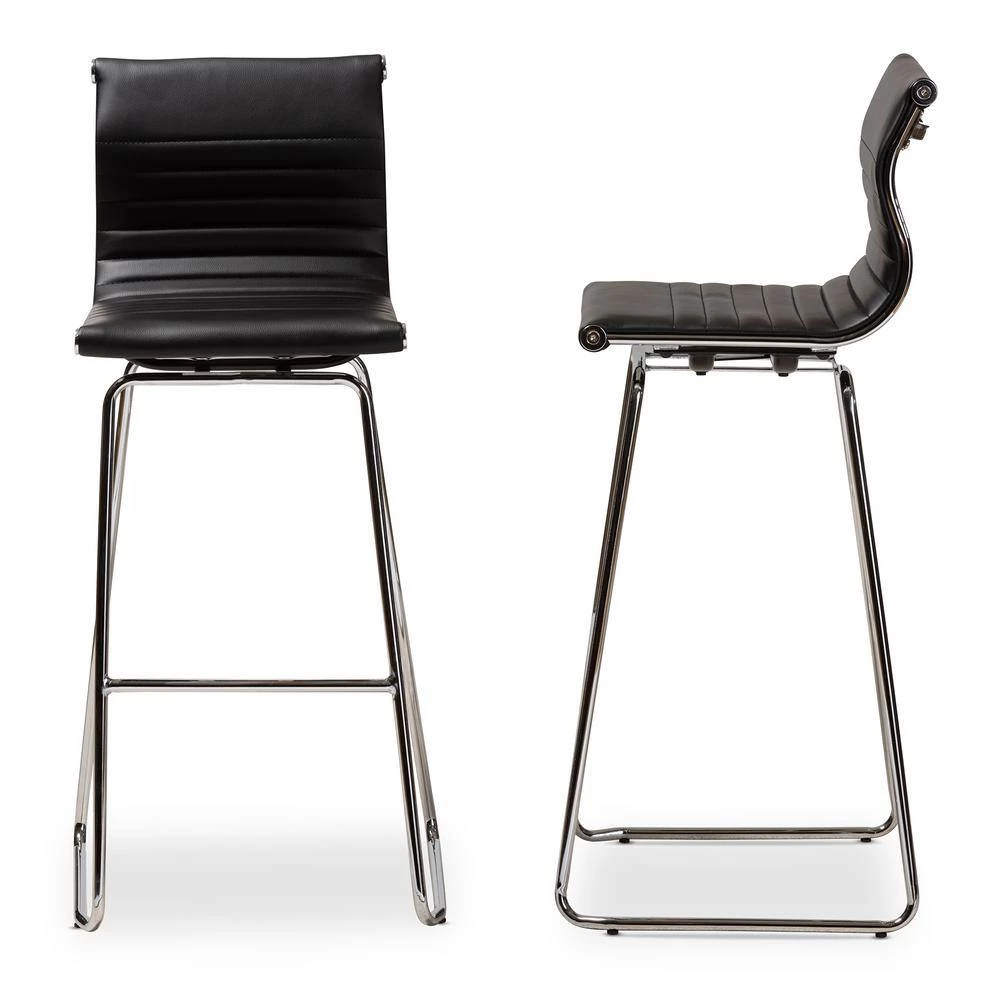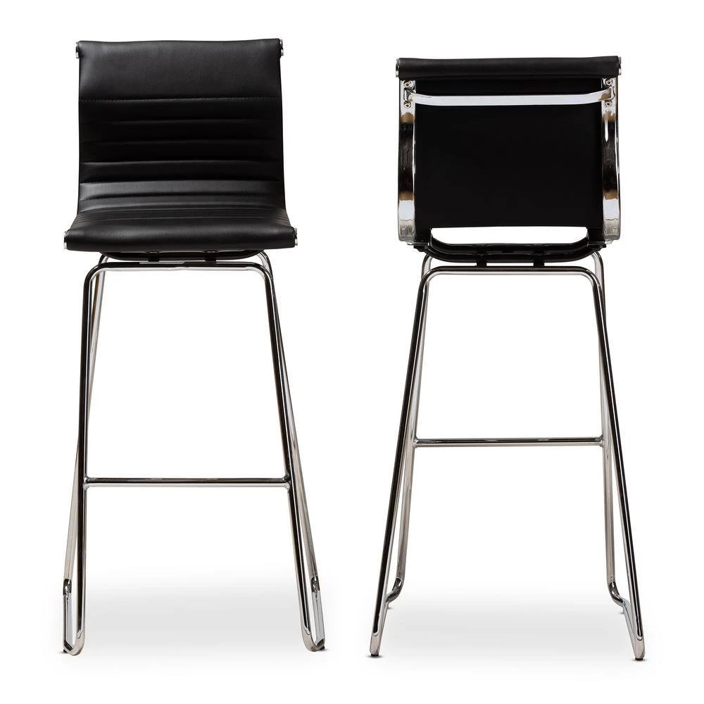 Anchor your kitchen in sleek, modern style with the Giorgio counter stool. Constructed from high-quality, chrome-finished stainless steel for strength, the Giorgio is upholstered in durable black faux leather for easy maintenance. Designed with comfort in mind, the counter stool features a curved backrest and a footrest. Rubber protectors are affixed to the bottom of the counter stool to help prevent scratched floors. This stylish and practical counter stool is sure to spruce up any interior. The Giorgio counter stool is made in China and requires assembly.