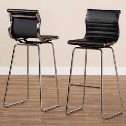 - Chrome-finished stainless steel frame and faux leather upholstery