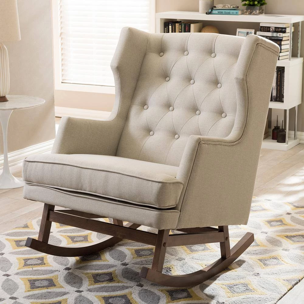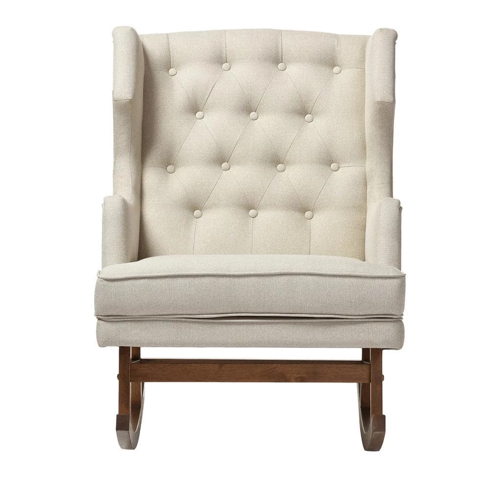 - Sturdy rubberwood rocking rails in dark walnut finishing