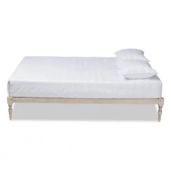 Keep your bed setup cool and casual with the Iseline bed frame. Crafted from solid rubberwood, the Iseline features a chic antique oak finish. Its low platform provides a modern feel, while turned legs lend an old-world charm. Add some crisp white sheets and a plush duvet to create a cozy retreat. This bed includes wood slats, which eliminate the need for a box spring. The Iseline bed frame is made in Malaysia and requires assembly.