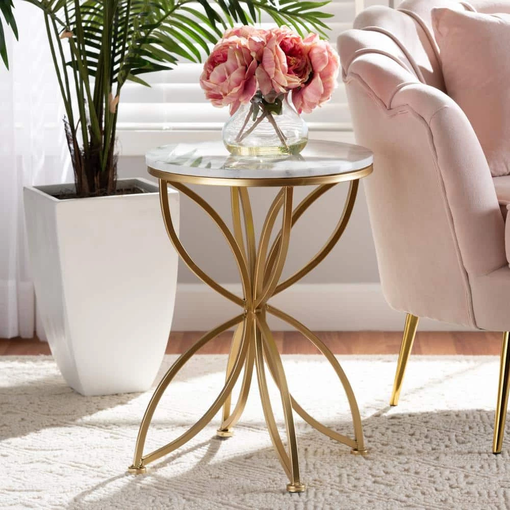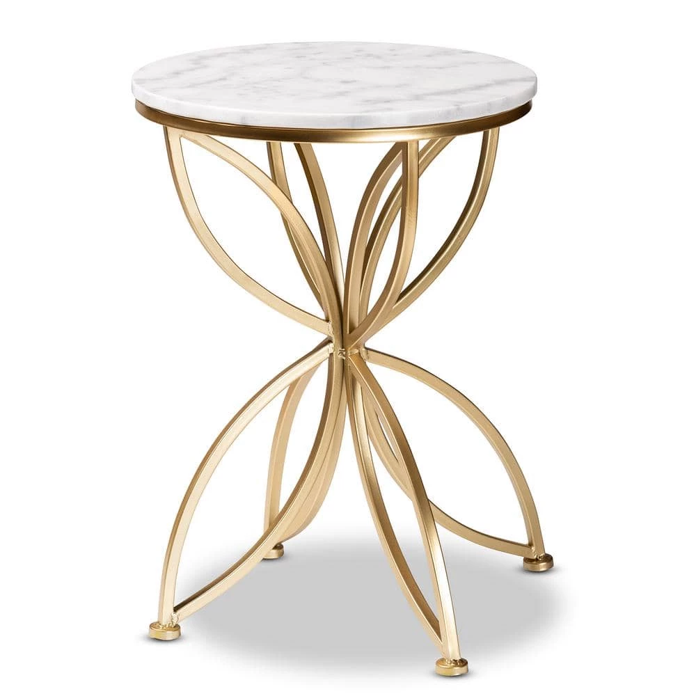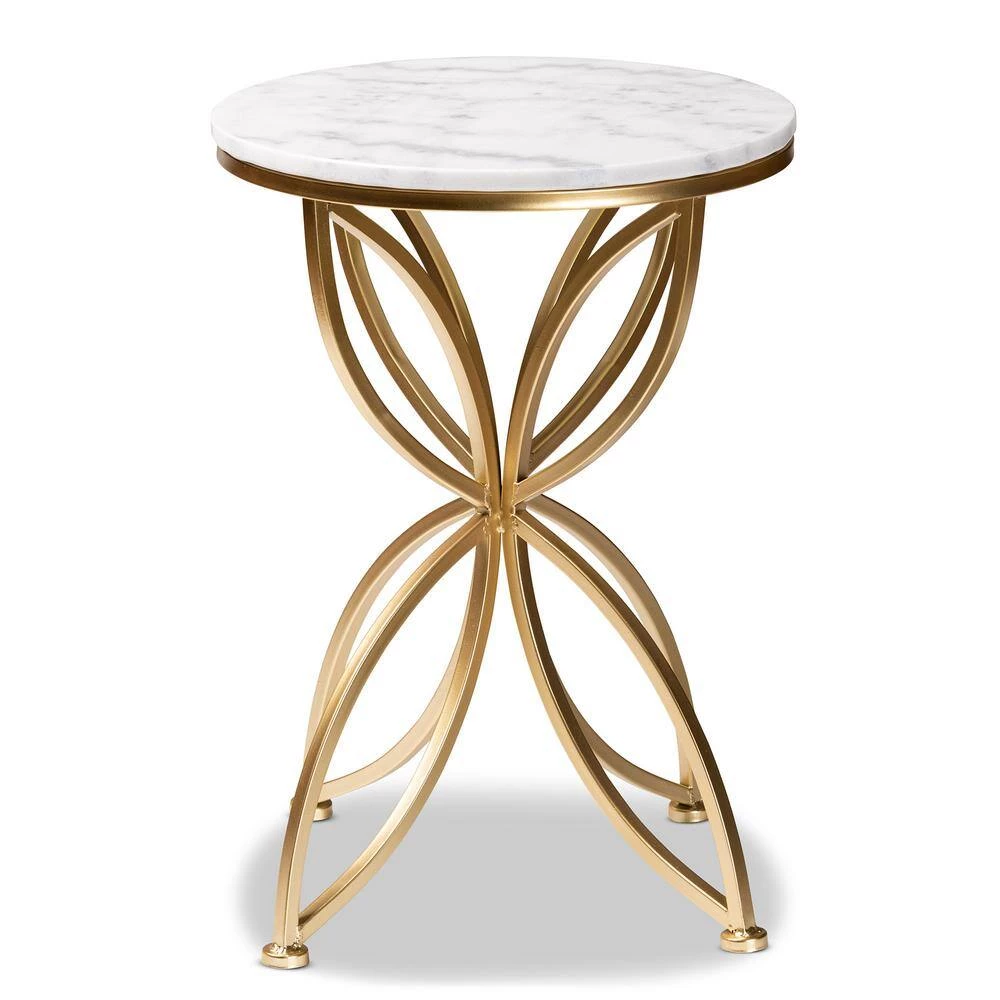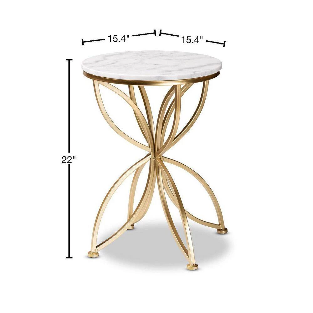 Bring a luxurious and convenient accent to your space with the lovely Jaclyn end table. Made in China, this table is comprised of a solid metal base topped with a clean marble tabletop. The geometric base features angled legs in a pleasant, symmetrical design that is sure to stand out. The Jaclyn will arrive fully assembled and utilizes a rounded tabletop that forms a smooth display. A petite yet practical addition, the Jaclyn end table beautifies any interior space.