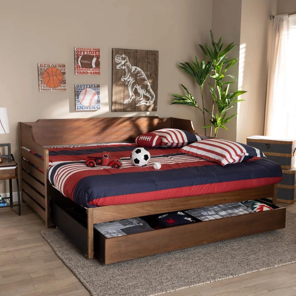 Create an in-home retreat to lounge in with the Jaqueline daybed. Made in Malaysia, the Jaqueline can be swiftly converted from a twin size bed to a king size bed. A large underside drawer provides ample space to store toys and extra blankets. The slatted design on the frame highlights the stunning wood craftsmanship and allows light to flow through for an open, airy feel. Assembly is required and a box spring isn’t necessary, as the daybed comes with internal slats for mattress support. Providing the ideal spot to unwind, the versatile design of the Jaqueline daybed is a fantastic fit for a bedroom or guest room.