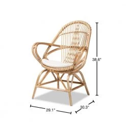 Produce a peaceful ambiance in your space with the tropical allure of the Jayden accent chair. Made in Indonesia, this chair is comprised of a natural rattan frame fitted with a plush cushion upholstered in smooth polyester fabric. The visually striking backrest features woven embellishments for excellent support while convenient armrests provide enhanced comfort. The Jayden will arrive fully assembled and utilizes an angled seat to encourage relaxation. Inspired by exotic craftsmanship, the Jayden accent chair is a lovely addition to any space. This is a product of nature and may have variations in areas such as, but not limited to, color, pattern, grain and texture. The hair-like strands of rattan/rattan-fiber are common due to nature of the material.