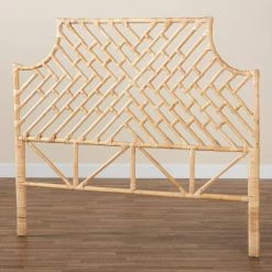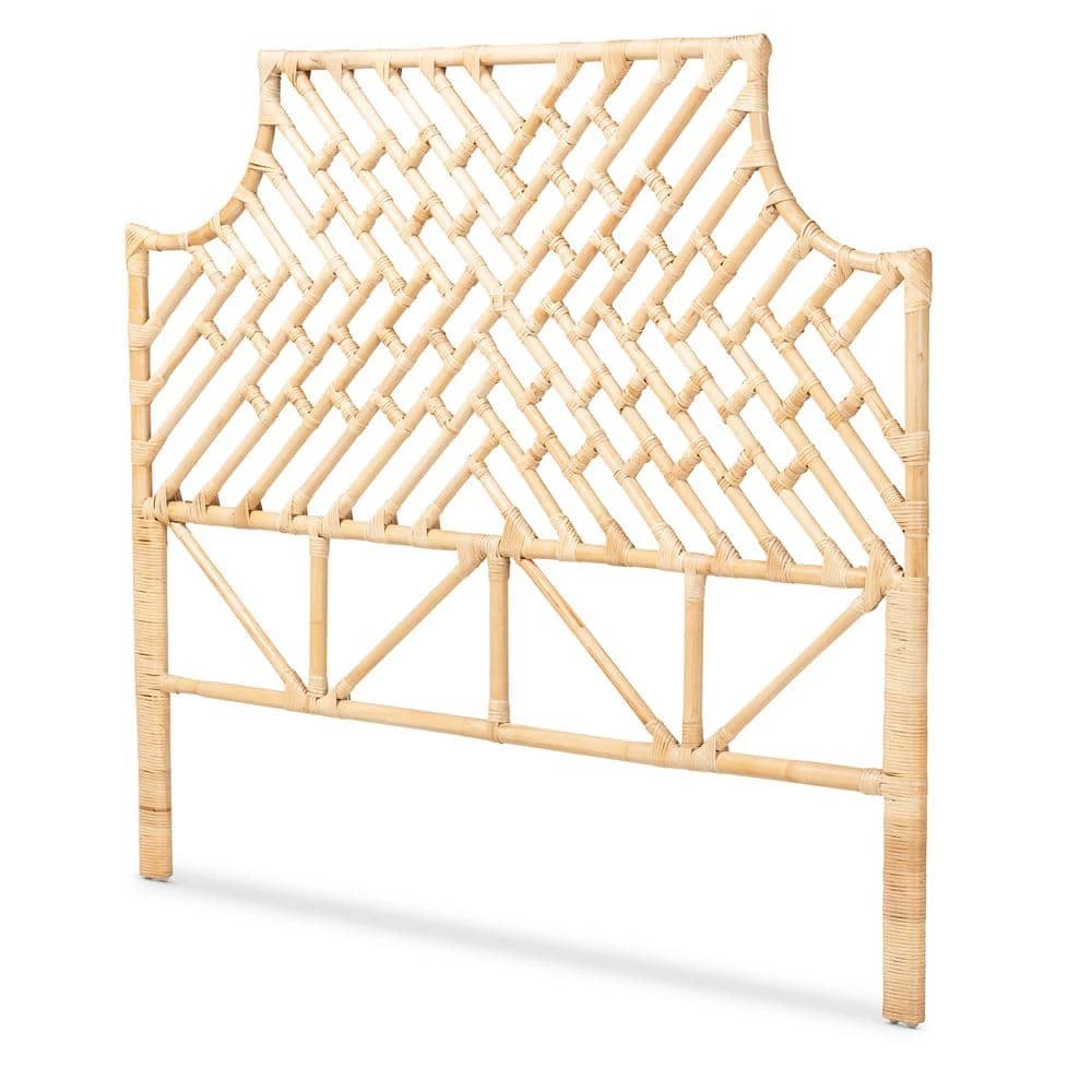Grant a truly remarkable backdrop to your bedroom with the tropic appeal of the Jayliah headboard. Made in Indonesia, this stunning piece is handcrafted by skilled artisans using natural rattan. Intersecting rattan rods form a striking, geometric display while the openwork frame allows light to flow naturally throughout the area. The Jayliah will arrive fully assembled and features a standalone design that sits snuggly between the bed frame and wall with no mounting required. The concave accents of the corners draw the eye to the beautiful craftsmanship in the center, making the Jayliah headboard an extraordinary upgrade to any bedroom layout. Due to the nature of the natural materials used in this product, it may have variations in areas such as, but not limited to, color, pattern, grain and texture. The hair-like strands of rattan/rattan-fiber are common due to nature of the material.