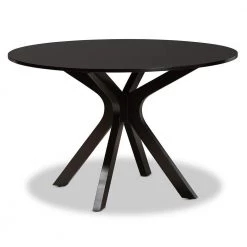 A unique expression of modern minimalism, the Jeane dining set enhances any dining space with its simple yet striking design. Made in Malaysia, the Jeane is constructed from sturdy wood and is comprised of 6-chairs and one circular table. Foam-padded seats underneath smooth faux leather provide plush comfort while the circular tabletop allows ample elbow room for each member of the table. Requiring assembly, the dark color scheme of the Jeane allows for easy integration with modern home decor. A set that radiates classic style, the Jeane dining set is a fantastic addition to any dining space.