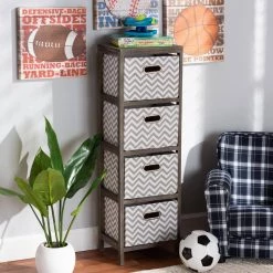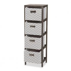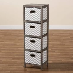 Encourage a lively, energetic atmosphere in your home with the striking design of the Jorah storage unit. Made in China, this unit is comprised of a lightweight wood frame fitted with fabric upholstered baskets. Four baskets provide ample storage space to organize and declutter busy areas of your home. Comes fully assembled, the Jorah features sleek metal handles that heighten its contemporary design. A stylish and efficient addition, the Jorah storage unit enhances the interior of any space.