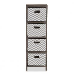 Encourage a lively, energetic atmosphere in your home with the striking design of the Jorah storage unit. Made in China, this unit is comprised of a lightweight wood frame fitted with fabric upholstered baskets. Four baskets provide ample storage space to organize and declutter busy areas of your home. Comes fully assembled, the Jorah features sleek metal handles that heighten its contemporary design. A stylish and efficient addition, the Jorah storage unit enhances the interior of any space.