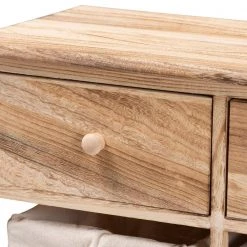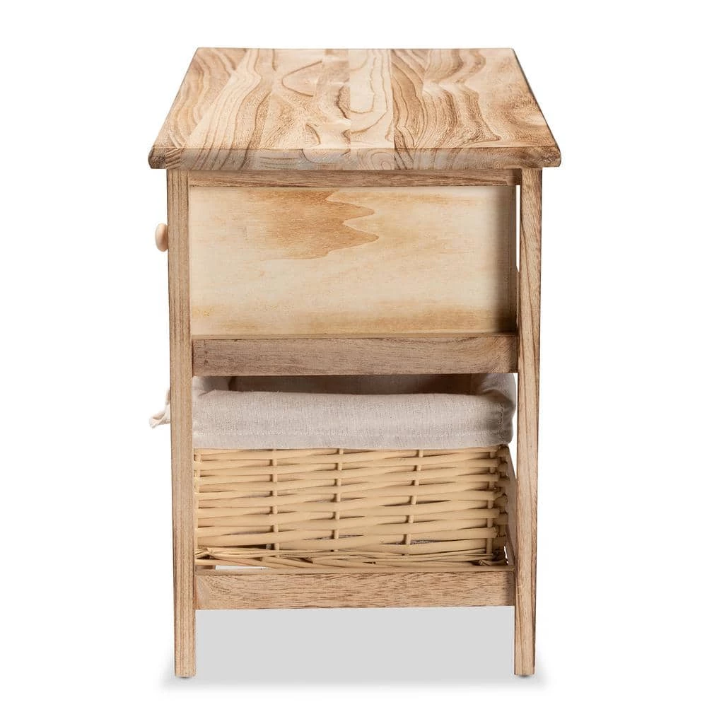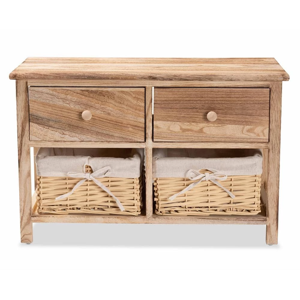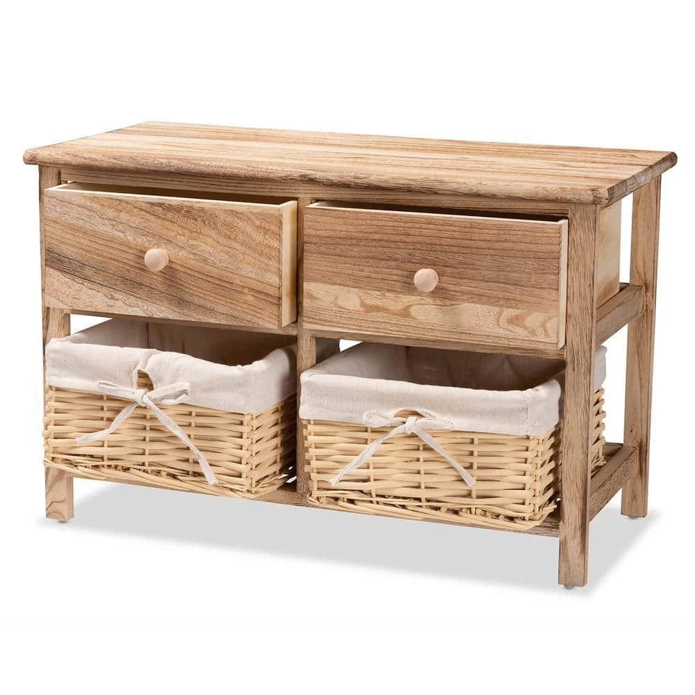 Add a touch of warmth to your interior with the natural wood tones of the Kenwood storage unit. Made in China, this unit is comprised of a lightweight wood frame fitted with woven baskets. Two drawers provide secure on-hand storage while two baskets create a convenient display for larger items. Comes fully assembled, the Kenwood utilizes fabric liners in its baskets for a charming, contemporary touch. Rounded drawer knobs complete the look, making the Kenwood storage unit a lovely addition to any space.