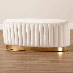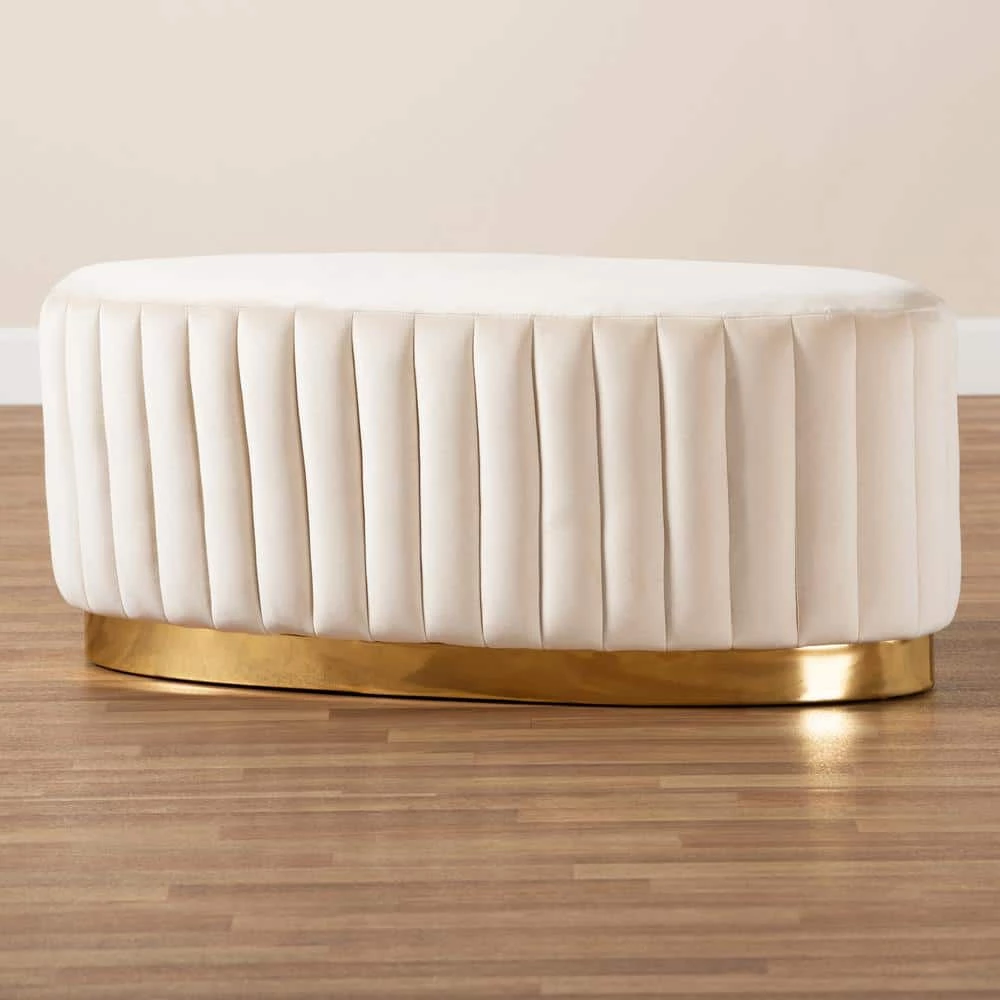 Accent your space with the glamorous design of the Kirana ottoman. Made in China, the Kirana is comprised of a solid wood frame padded with a lavish layer of foam and upholstered in smooth, sumptuous velvet fabric. Incredibly soft to the touch, channel tufting lends stunning visual appeal and accentuates its plush exterior. Fully assembled, the Kirana features a gold-tone PU leather base for added glamour. Stunning craftsmanship and plush comfort distinguish the Kirana ottoman as an eye-catching addition to any space.