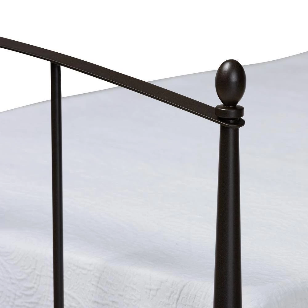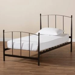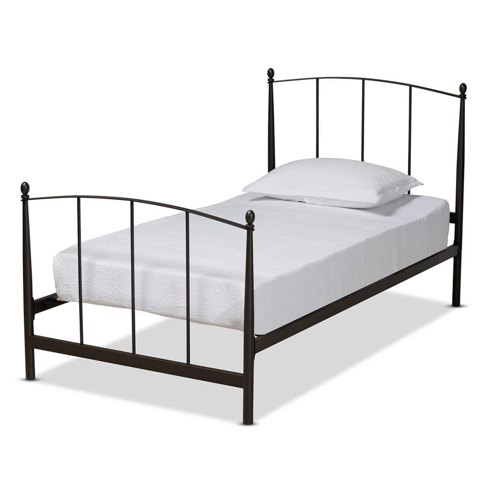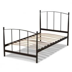 Add a modern touch to your bedroom with the smooth curves and light outline of the Lana bed. Made in Malaysia, this bed features a low platform comprised of black finished metal. The headboard and footboard showcase an openwork design that provides an airy feel, while smooth curves create a soothing silhouette. Requiring assembly, the Lana is equipped with wood slats for mattress support, eliminating the need for a box spring. Finial caps add an elegant touch, making the Lana bed a tranquil addition to any space.