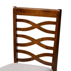 An elegant silhouette is paired with comfortable seating to make the Lanier dining chair a timeless addition to any dining space. Made in Malaysia, this wood chair features a warm walnut brown finish that complements the light fabric upholstery. Designed with both comfort and style in mind, the Lanier features a plush foam-padded seat, as well as a striking cut-out design on its back. Requiring assembly, the Lanier is supported by tapered feet for a classic, refined touch. Equally enjoyable for both dinner parties and family dinners, the Lanier dining chair is sure to enhance any dining experience.
