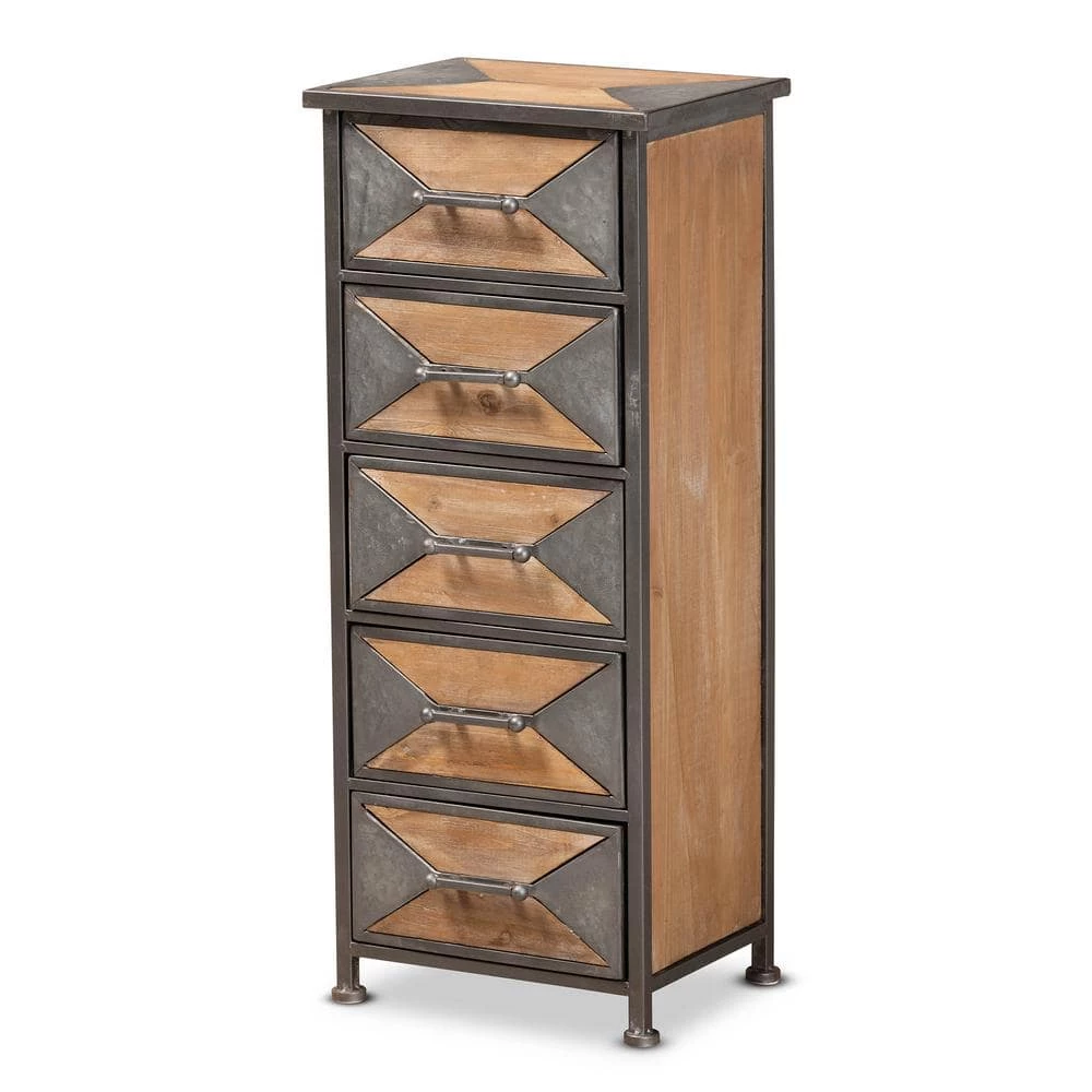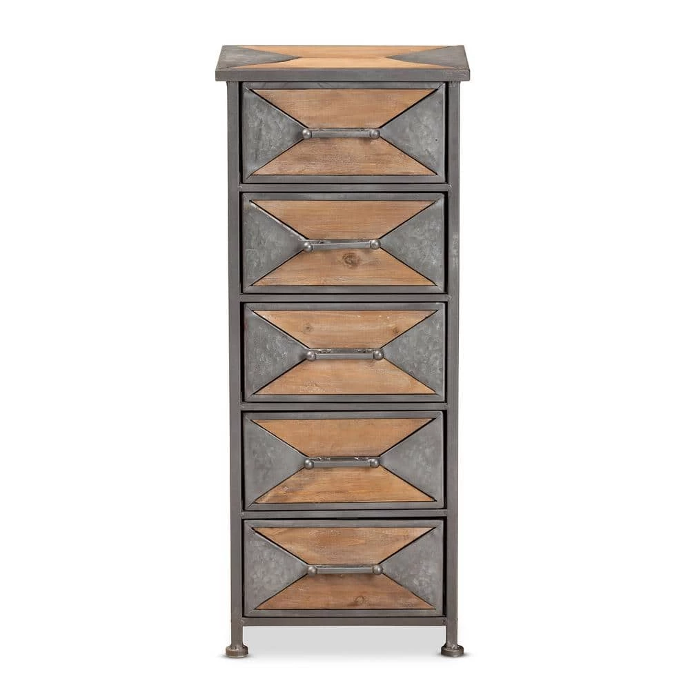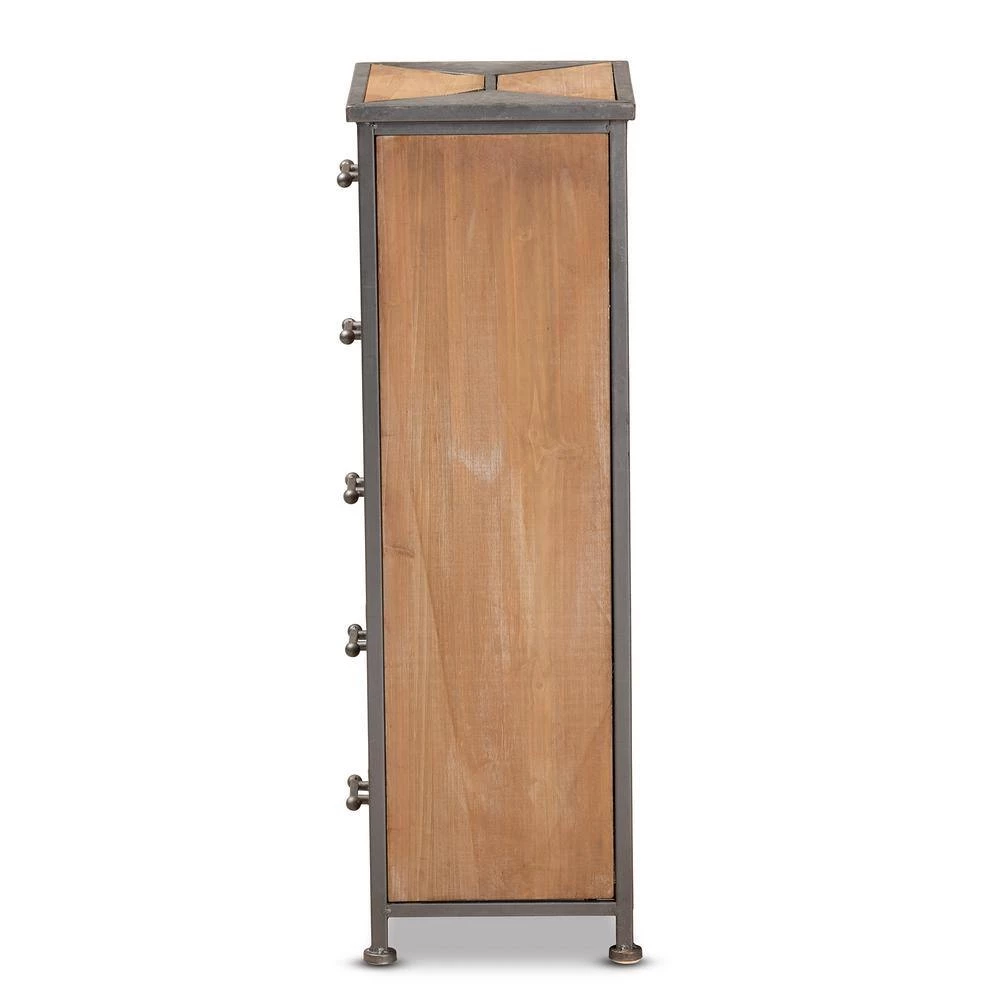 A contemporary take on industrial design, the Laurel cabinet enriches any space. Made in China, the Laurel is comprised of an antique grey finished metal frame combined with whitewashed oak finished wood and further enhanced with sleek, angular accents. 5-drawers provide ample storage space to keep items organized and out of sight. Fully assembled, each drawer features a vintage style handle for easy access. An eye-catching accent that transforms any space, the Laurel cabinet is an exceptional addition to the modern home.