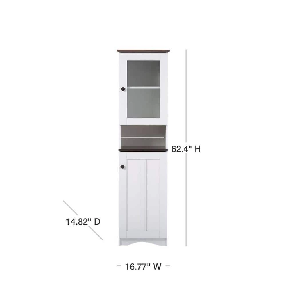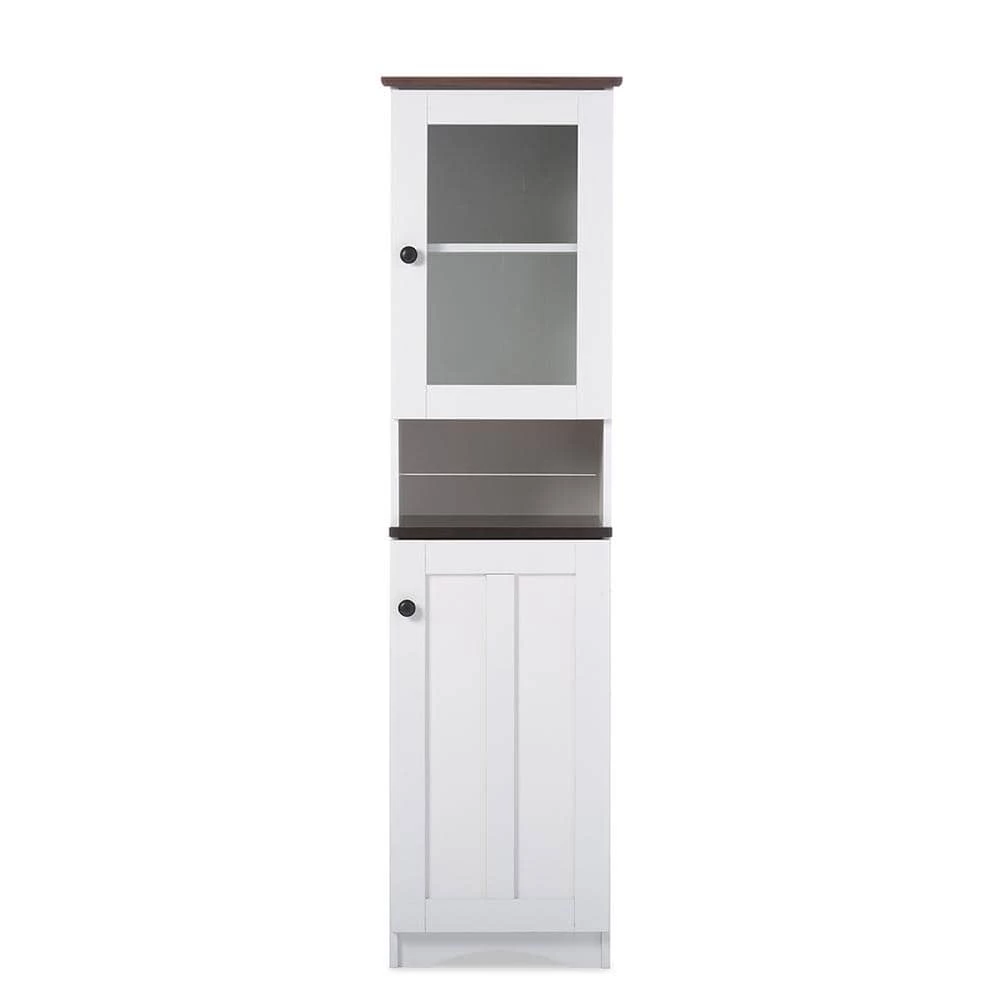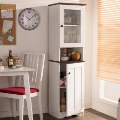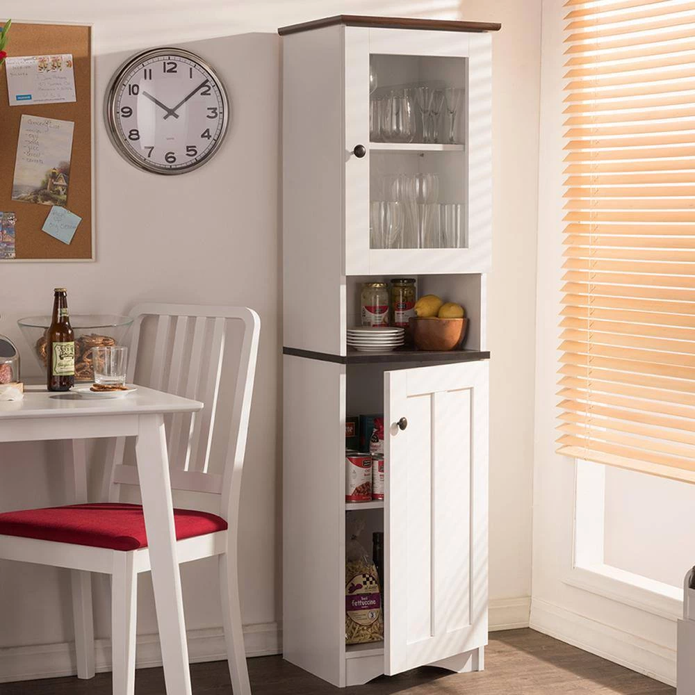 Grace your interior with the lovely design of the Lauren Buffet and Hutch Kitchen Cabinet, a distinguished unit whose appeal is synonym with classy style and the comfort of generous storage space. Manufactured using engineered wood and MDF to reveal the timeless beauty of modern and contemporary style, the Lauren comes in a versatile 2-tone aesthetic and incorporates 2-doors featuring metal round handles. The upper door is made of glass for direct viewing access to the shelves, providing the perfect spot to place porcelains and other treasured dishware. The lower wooden door reveals 2 extra shelving spaces for your kitchen clusters etc. Made in Malaysia, the kitchen cabinet requires assembly.