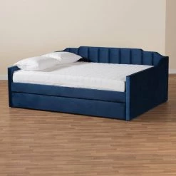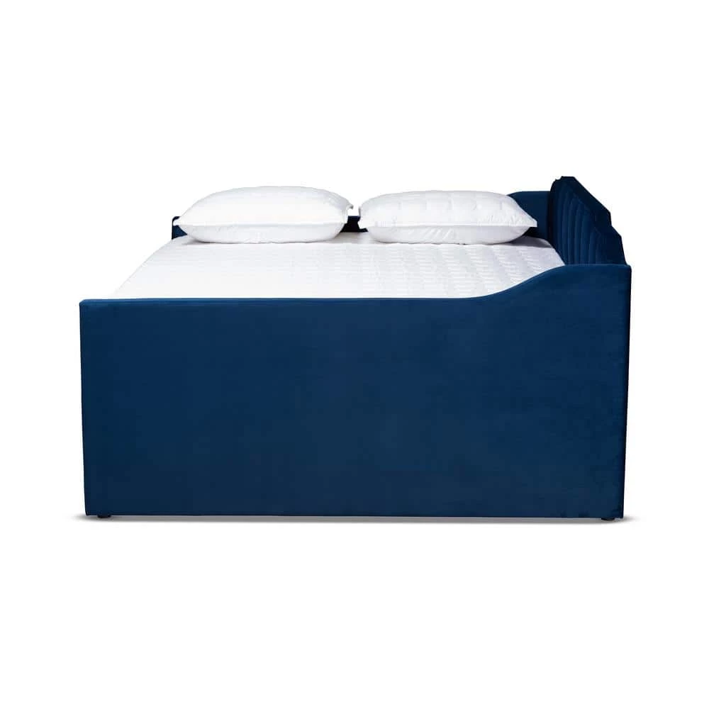Imbue your bedroom with the tasteful design and plush comfort of the Lennon daybed. Made in Malaysia, the Lennon is comprised of a wood frame padded with foam and upholstered in sumptuous velvet fabric. Channel tufting lends a crisp, contemporary touch, while the roll out trundle provides convenient accommodation for overnight guests. Requiring assembly, the Lennon utilizes wood slats for mattress support, which eliminate the need for a box spring. Stepped detailing creates an elegant silhouette, making the Lennon daybed a serene addition to any space.