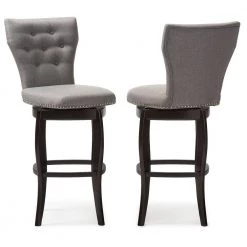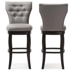 Select the Baxton Studio Leonice Bar Stool to spruce up any seating area. This stool features a full back, providing you with a lot of support, so you can sit comfortably for long periods of time. It has a modern style, offering a trendy touch to your existing interior design. It is designed without arms, so you can tuck it under the table or bar. Designed with a wooden frame, it is easy to maintain and creates a homey, aesthetically pleasing look. This gray stool is easy to match with your other pieces of furniture. It is tufted, giving it a more regal look. This stool has a foot rest, allowing you to sit back and relax.