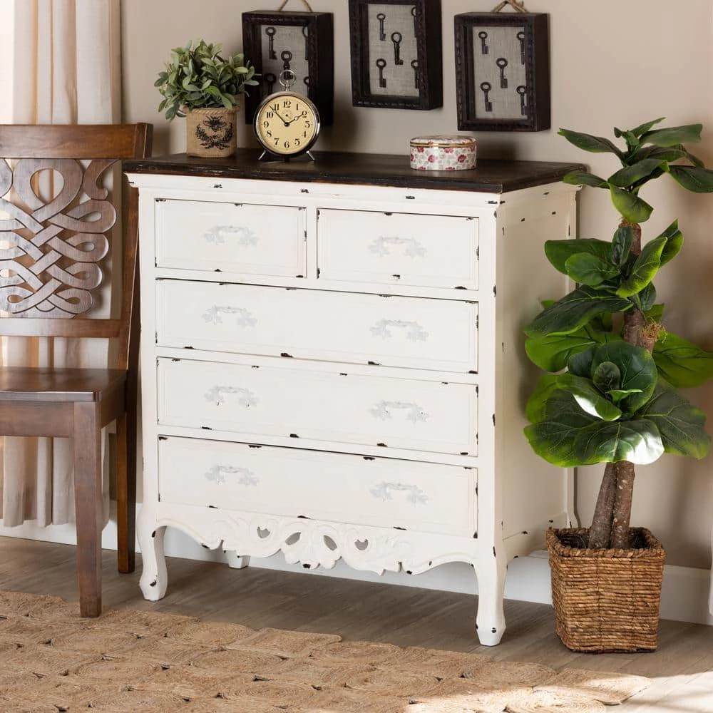 Bring the charm of mid-century design to your bedroom with the Levron storage cabinet. Made in China, this cabinet is constructed from solid wood with molded embellishments. 5-drawers offer ample storage space to organize all your bedroom essentials. The Levron will arrive fully assembled and utilizes cabriole legs for stable support in elegant, mid-century style. A timeless design equipped with modern convenience, the Levron cabinet is a fantastic addition to any space.