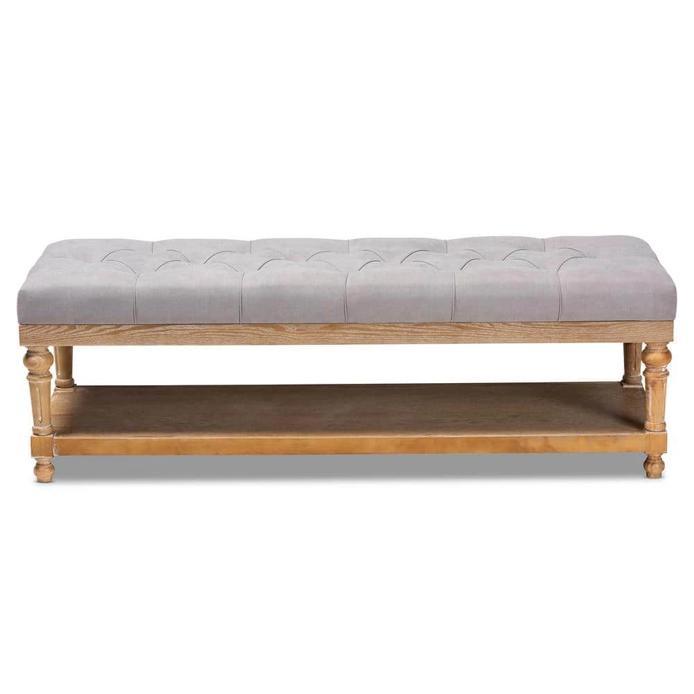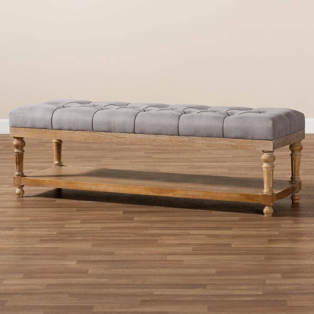 Add a touch of sophisticated grace to your home with the Linda bench. Made in Malaysia, the Linda is fitted with a lower storage shelf made out of greywashed wood to hold shoes, decorations, or supplies. Padded with foam for the utmost comfort, the Linda is upholstered in linen fabric and enhanced with elegant button tufting. Excellent craftmanship adds a weathered feel to the piece, giving the bench a hint of rustic charm. The Linda requires assembly and is the perfect accent in rooms with open space. Spruce up any modern foyer or entrance room with the stylish utility found in the Linda storage bench.