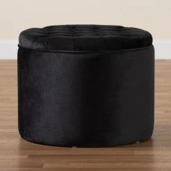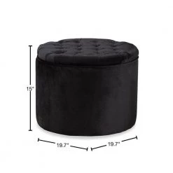 Boast a luxuriant atmosphere in your space with the wonderful versatility of the Livana storage ottoman. Made in China, this ottoman is comprised of a sturdy wood frame padded with foam and upholstered in luscious velvet fabric. Its rounded cushion is removable and reveals a convenient storage compartment for extra pillows and blankets. The Livana will arrive fully assembled and features an elegant button tufted design for a charming, refined touch. A stunning combination of beauty and utility, the Livana storage ottoman embellishes any space with modern flair.