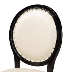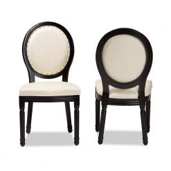 Craft a charming dining room atmosphere with the old-world inspired design of the Louis dining chair. Made in China, this chair is comprised of a study wood frame padded with plush layers of foam and upholstered in smooth faux leather. With a rounded backrest, this chair is adorned with a vintage nail head trim as well as molded accents that convey a classic, antique-like feel. Requiring assembly, the Louis features turned legs that lends an elegant outline while providing the chair with excellent stability and support. A remarkable piece that encapsulates old-fashioned glamour, the Louis dining chair elevates any occasion.