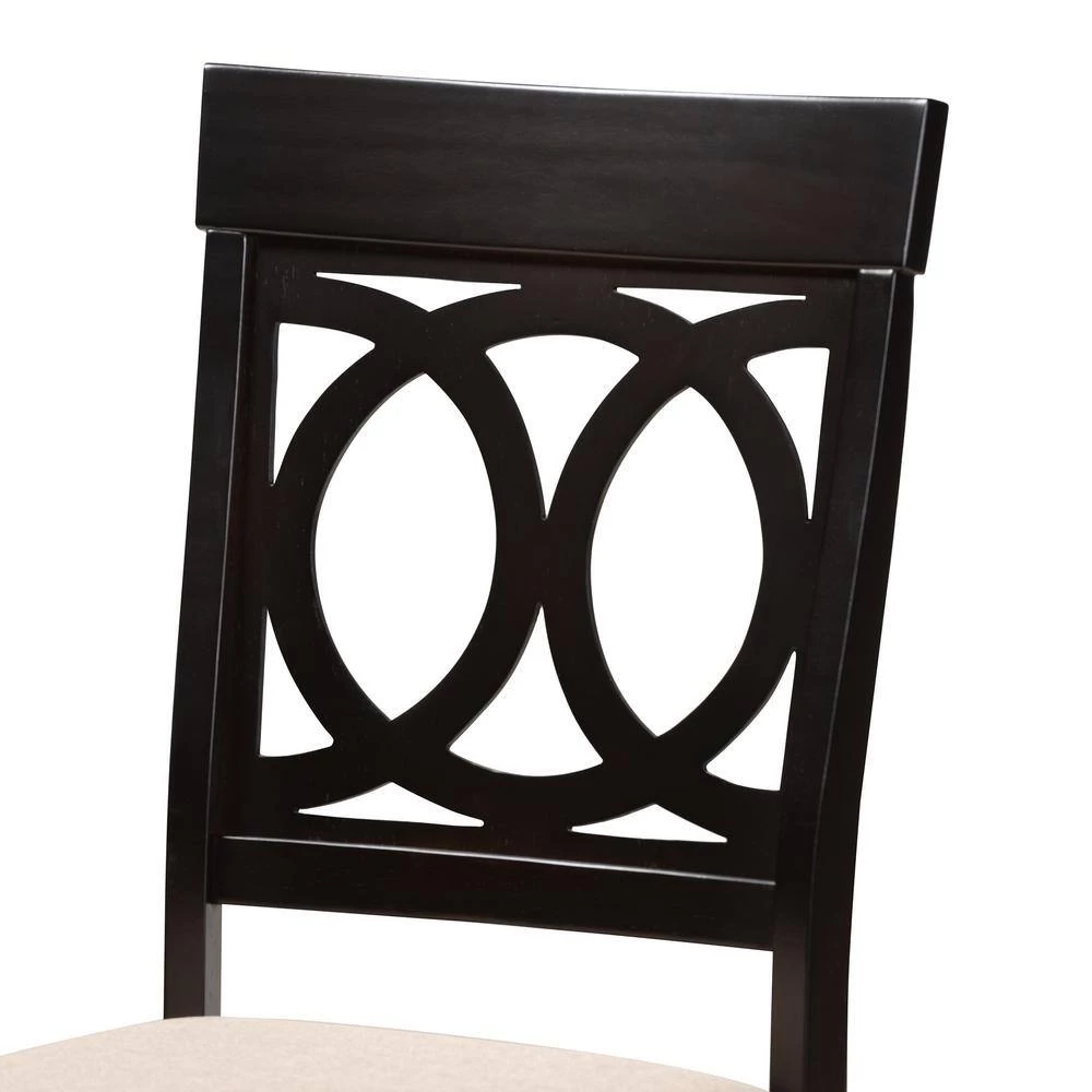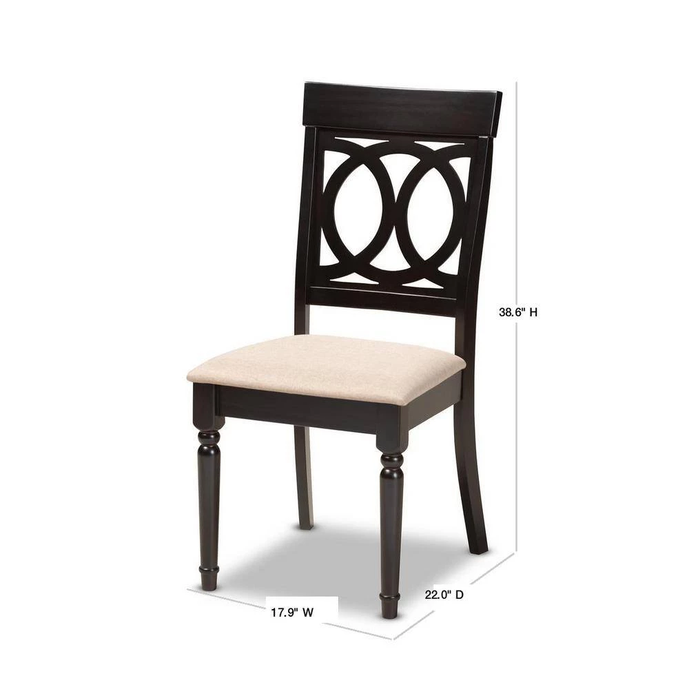 Enhance your dining space with the elegance of the Lucie dining chair. Constructed from solid oak wood, the Lucie showcases a rich espresso brown finish that complements the light polyester fabric upholstery. Designed with both comfort and style in mind, the Lucie features a plush foam-padded seat, as well as an exquisite cut-out design on its back. Turned legs add a classic, refined touch. The Lucie dining chair is made in Malaysia and requires assembly.