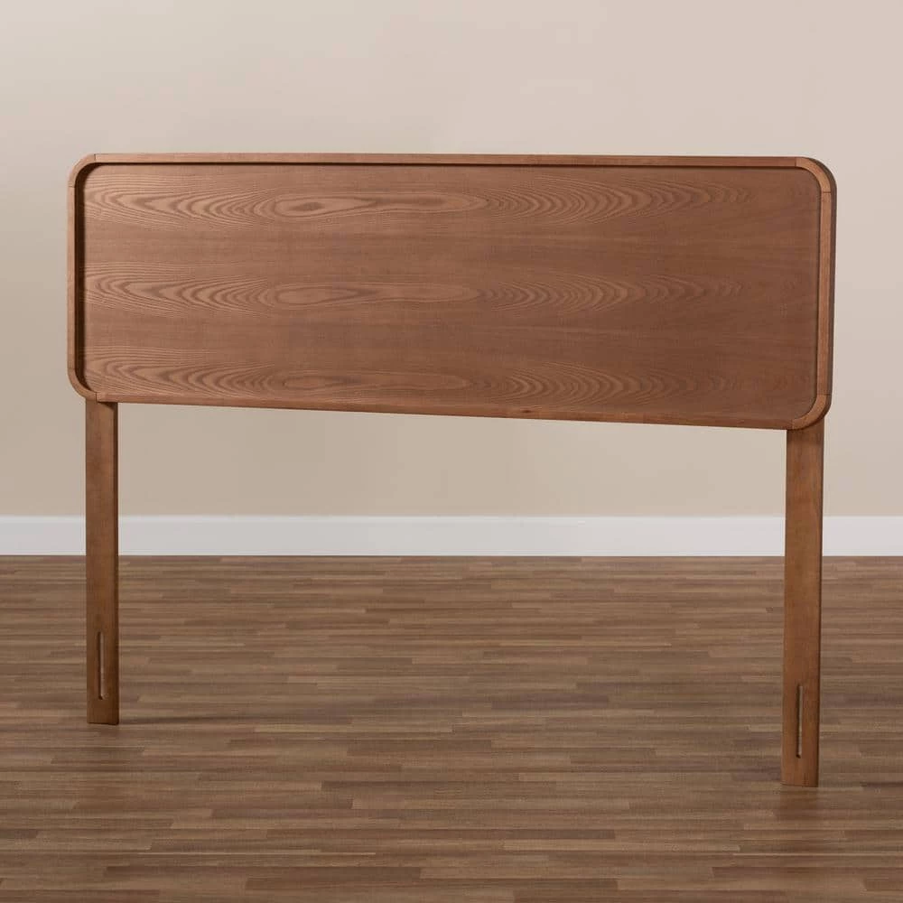 Add a charming retro backdrop to your bedroom with the Mailene headboard. Constructed from sturdy wood, the Mailene offers solid support for you to lean against as you read and watch TV. The headboard features a classic walnut brown finish, as well as curved edges and inset detailing for a cool, mid-century inspired look. Six pre-drilled holes on top provide five different height configuration options. The Mailene headboard is made in Malaysia and requires assembly.