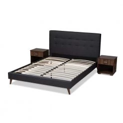 - Mid-century modern bedroom set includes 1-platform bed and 2-nightstands