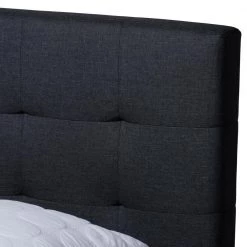 - Constructed from solid rubberwood, engineered wood, polyester fabric, and foam