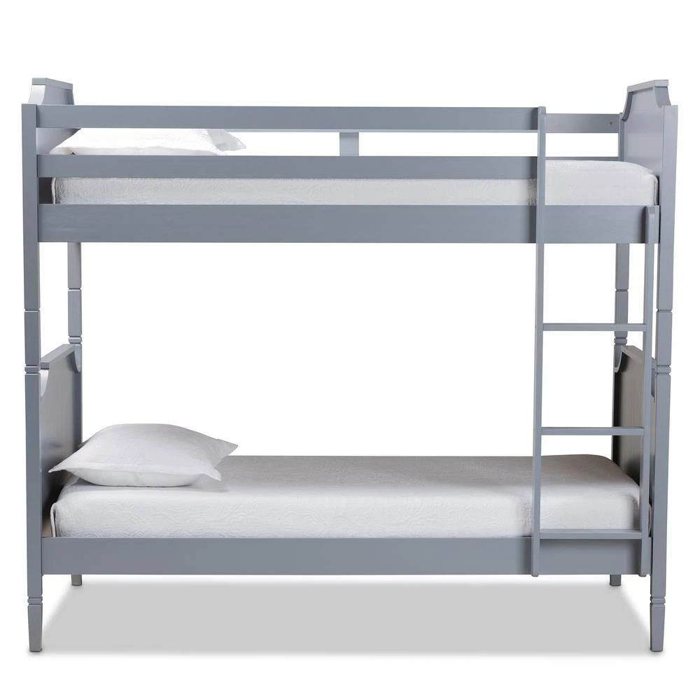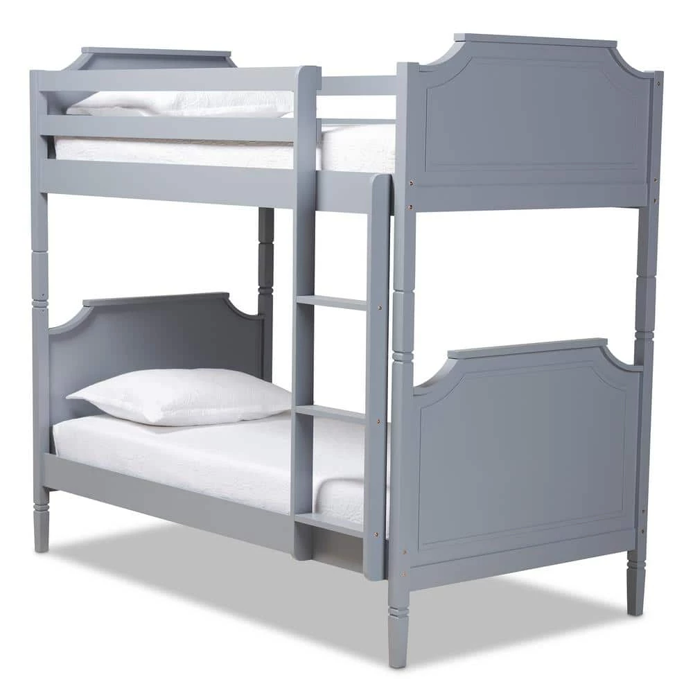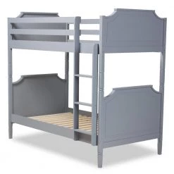A charming and compact design makes the mariana bunk bed a smart addition to any child’s room. Constructed from sturdy wood, the mariana showcases a smooth grey finish that complements many color palettes. Its classic, regal look is attributed to the cut out silhouettes on the headboards and footboards, which are further enhanced with elegant crown molding. Designed with the utmost safety in mind, the mariana is equipped with a fixed ladder, as well as sturdy guard rails. The mariana bunk bed is made in Malaysia and requires assembly.
