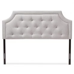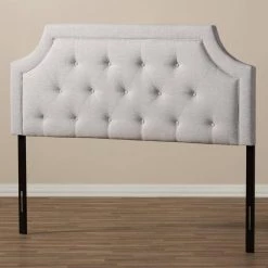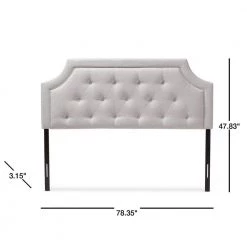 With its quality finishes and classic look, the Mars fabric upholstered headboard with solid rubberwood legs is available in a range of warm hues to complement your look. Romantic bedhead shape with exquisite corners and curves, putting a modern edge on classic design. Constructed of solid rubberwood and MDF, the Nadeen king size headboard is upholstered in durable greyish beige polyester fabric. Featuring deep button-tufted design for a classic look, the Mars is supported sturdily by the wood posts with 5-level adjustable pre-drilled screw holes to the headboard and 2-level adjustable to the bed frame. Leg supports are invisible once set up and can be adjusted to suit the height of your ensemble for convenience. Traditional adjustable metal bed frame such as Leggatt and Platt bed frame will work well with the headboard. Cushioned headboard is padded with high-density foam for softness and shape, providing a comfortable leaning space. Made in Malaysia, the Mars headboard requires assembly.