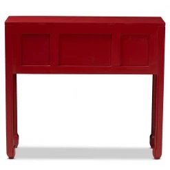 Add some old world charm to your home with the Melodie console table. The classic and antique-inspired design comes through in the curves and ornamentation of the table. The Melodie’s sturdy Bayur wood frame is finished all over in a unique red color, making this an incredible statement piece. The table features six drawers, all with detailed bronze-finished handles. The Melodie also features a shelf space in the center, closed behind two doors with a clasp and pin-locking mechanism, in a bronze finish. The international influences in the table’s design make it easy to coordinate with a wide range of decor, including bohemian and contemporary looks. The Melodie is sure to be a conversation starter, perfect for displaying and adding storage in your entryway, hallway or mudroom. Made in Indonesia, the table requires assembly.