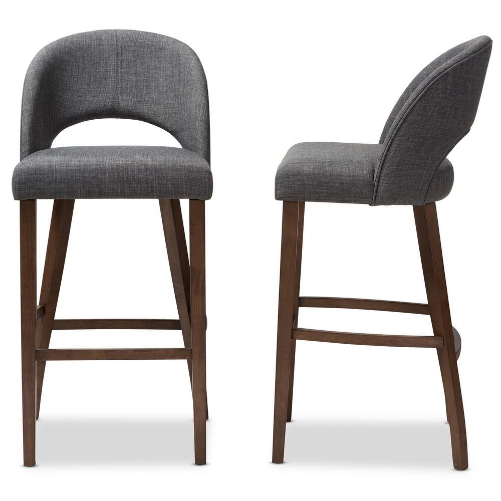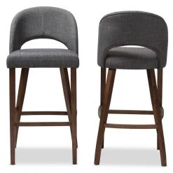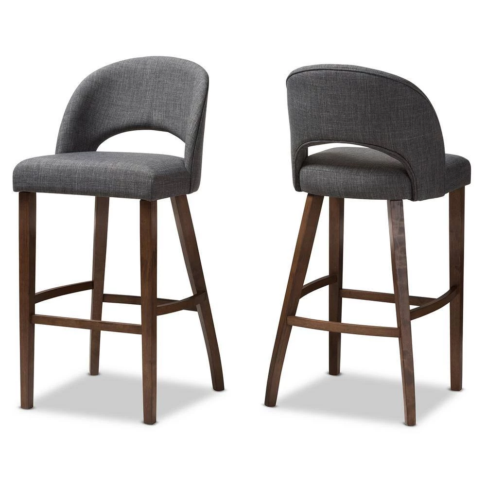 Touch up your kitchen with the Baxton Studio Melrose Bar Stool. This stool has a full back, which provides a lot of support, so you can sit comfortably for long periods of time. It features an armless design, so you can push it under the bar or counter. Featuring a mid-century modern style, it balances minimalism with practicality. Designed with a wooden frame, it will be perfect for adding a more unique and old-time feel to any home. This gray stool is easy to match with your other pieces of furniture.