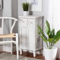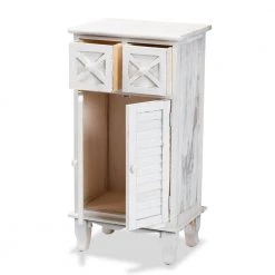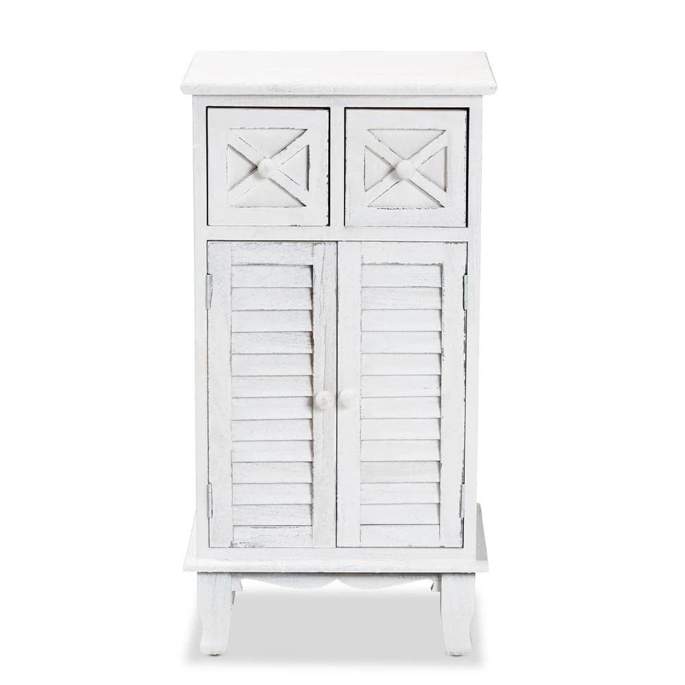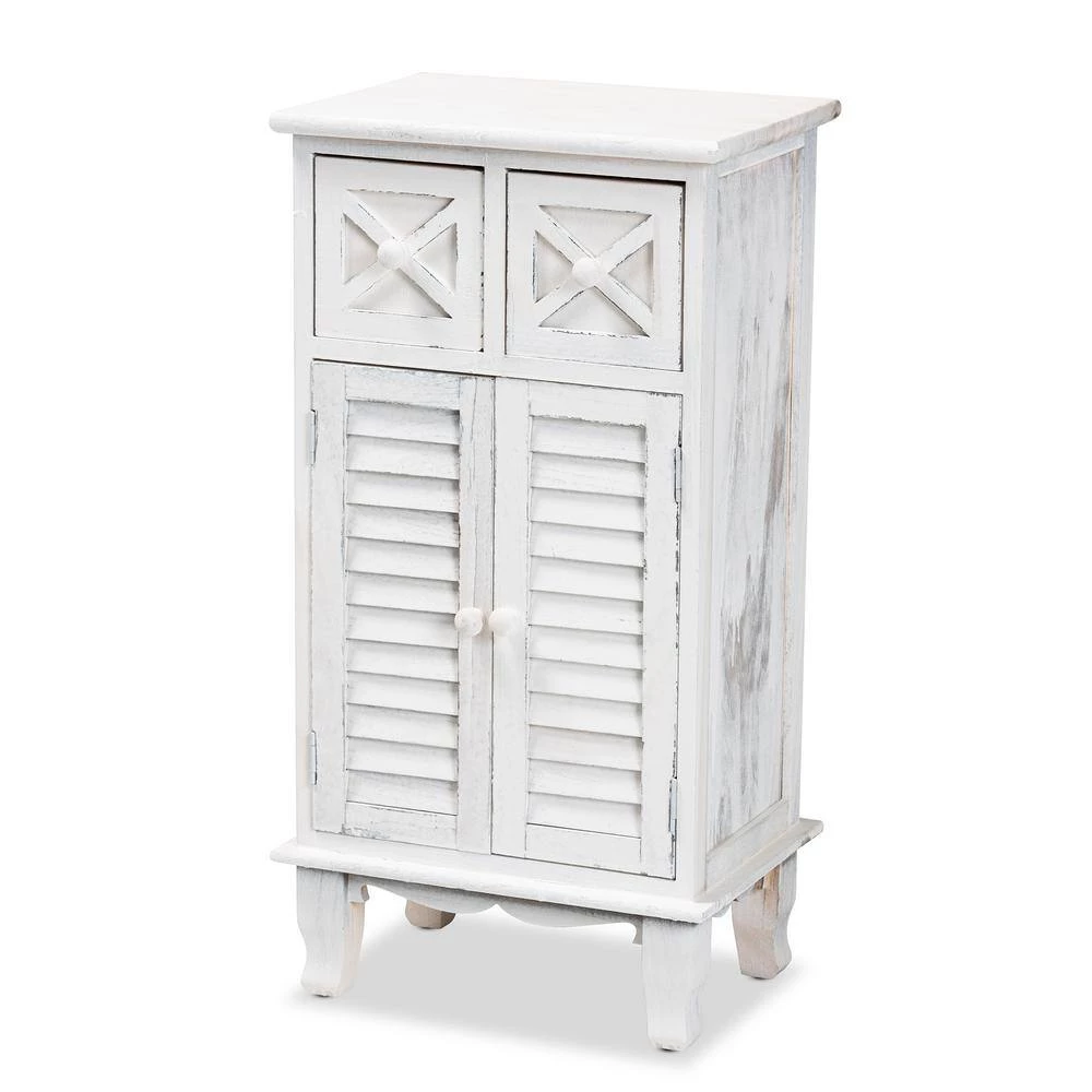 Give your space a classic, old-fashioned accent with the charming Moran storage unit. Made in China, this unit is crafted from lightweight wood. Two drawers offer convenient and secure storage space, while the space behind the doors organizes larger items. Comes fully assembled, the Moran utilizes cabriole legs for excellent support that exudes traditional elegance. Weathered accents create an antique-like feel, making the Moran storage unit a distinguished addition to any space.