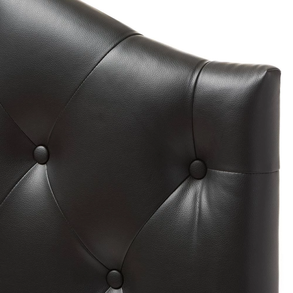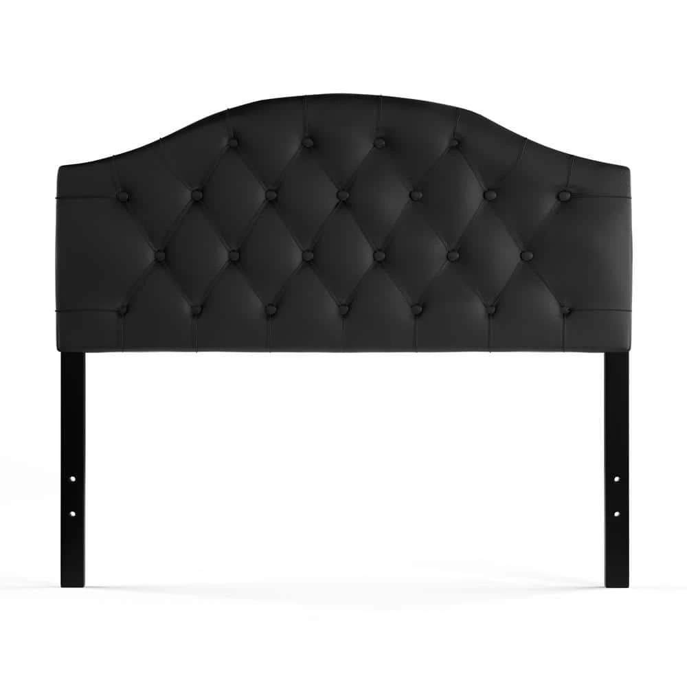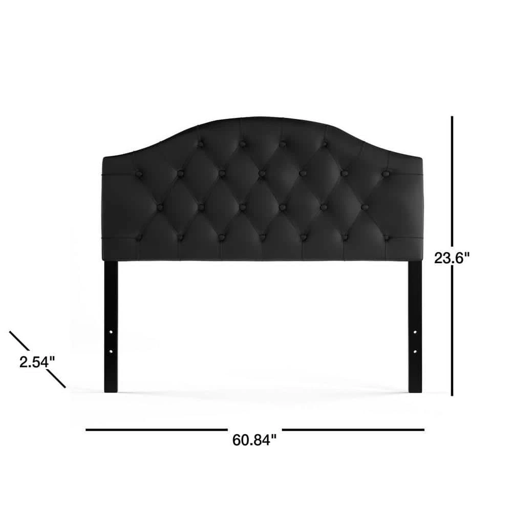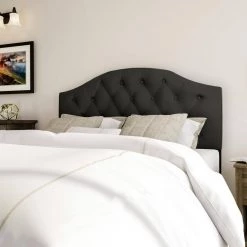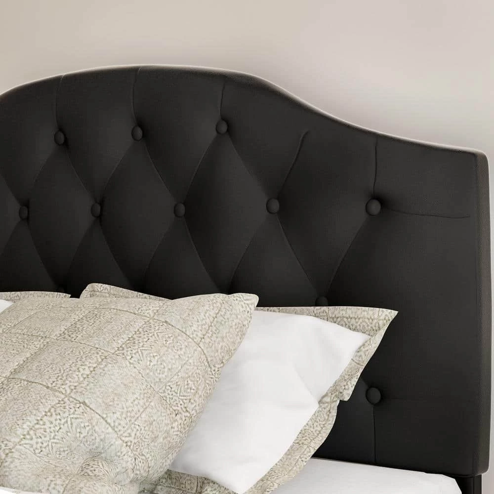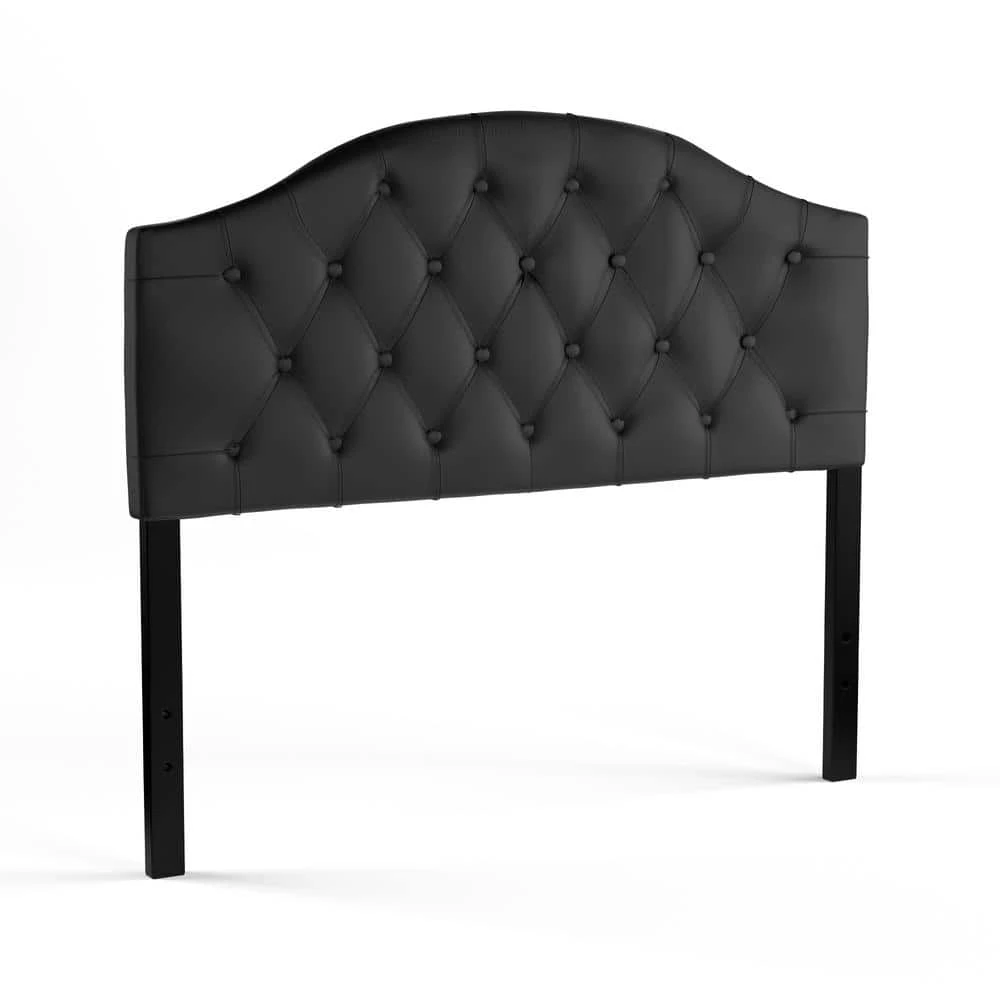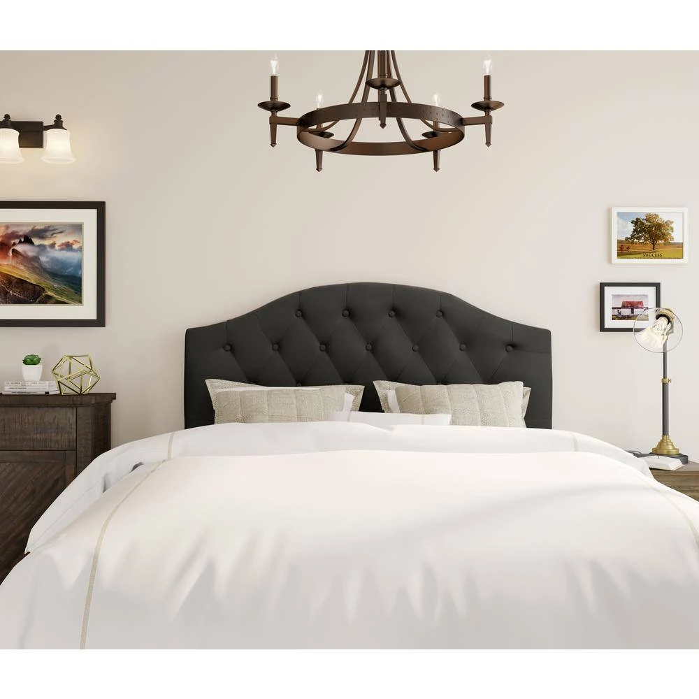 Add an accent of interest to your bedroom style with the Myra upholstered headboard. The headboard is twin upholstered in polyester fabric or faux leather for easy maintenance and every day’s use. Scalloped headboard frame with button-tufting design for a classic look while solid wood frame and leg supports for strength and sturdiness. Leg supports are invisible once set up and can be adjusted to suit the height of your ensemble for convenience. Headboard sits between the wall and the ensemble frame, attaching not to the bed base but to the legs, for stability. Cushion layer for softness and comfort. Made in Malaysia, the headboard requires assembly.