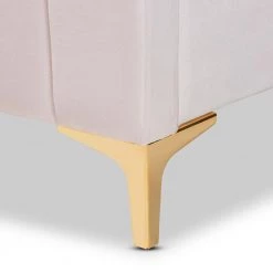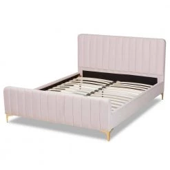 Create a stylish haven of comfort in your bedroom with the luxurious Nami bed. Made in Malaysia, the Nami is comprised of a sturdy wood frame padded with foam and upholstered in a smooth velvet fabric. A channel tufted footboard and headboard ensure plush and supportive comfort when sitting up in bed, while gold finished metal legs enhance its glamorous aesthetic. Assembly is required and a box spring is not needed, as the bed comes with internal slats for mattress support. Showcasing a lavish design with extraordinary comfort, the Nami platform bed upgrades any bedroom.