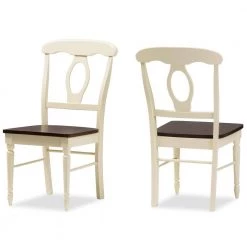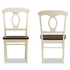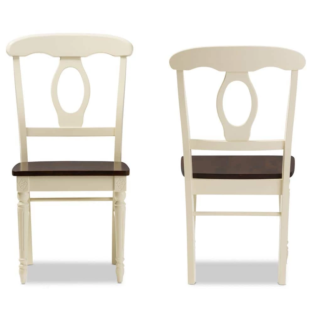 This attractive dining chair features antiqued cherry top and creamy buttermilk paint finished base for a casual, vintage-inspired look. Sure to look beautiful in any home, this dining chair is ideal for country cottages and modern townhouses alike. Expertly crafted from solid rubberwood, the Napoleon dining chair features a solid cherry wood seat supported by four detailed turning legs. Two-tone finishing and elegant ball design, this timeless collection is ideal for inviting friends over. The Napoleon chair is suitable to be used as dining chair for kitchen breakfast set or a casual dining set. Made in Malaysia, the Napoleon requires assembly.