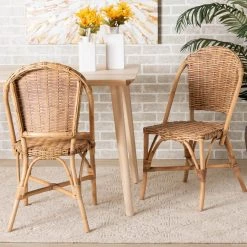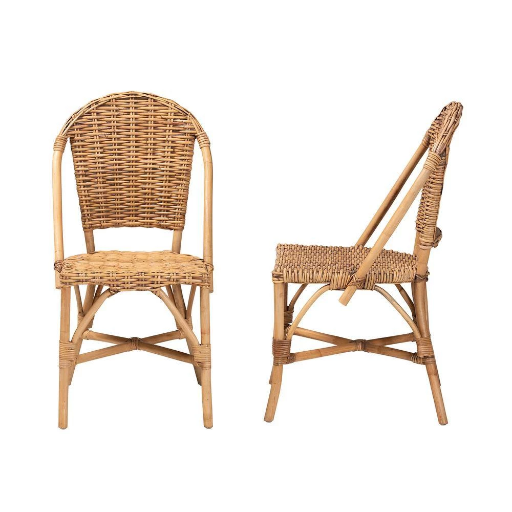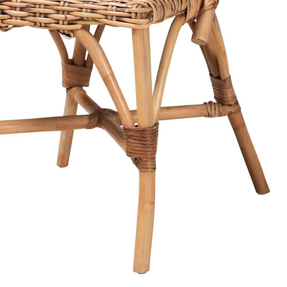 Reinvent the atmosphere of your space with the tropical spirit of the Neola dining chair. Made in Indonesia, this stunning piece consists of a handcrafted rattan frame adorned with woven embellishments. The rounded, openwork backrest strikes an eye-catching silhouette while enabling light to flow naturally throughout the room. The Neola will arrive fully assembled and features angled legs connected by a crisscross base for excellent stability and support. Part of any tranquil arrangement, the Neola dining chair brings an air of ease to the modern home.Due to the nature of the natural materials used in this product, it may have variations in areas such as, but not limited to, color, pattern, grain and texture. The hair-like strands of rattan/rattan-fiber are common due to nature of the material.