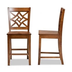 Add crisp, contemporary design to your space with the visually striking Nicolette counter stool. Made in Malaysia, the Nicolette is comprised of a sturdy wood frame showcasing a warm walnut brown finish. A smooth scoop seat provides casual comfort. Requiring assembly, the backrest features a unique, intricate cut out design for strong visual appeal. Comfortable and stylish, the Nicolette counter stool elevates any experience.