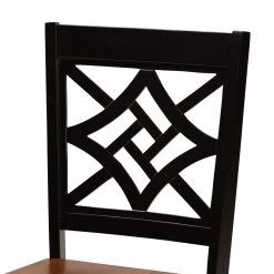 Add crisp, contemporary design to your dining space with the visually striking Nicolette dining chair. Made in Malaysia, the Nicolette is comprised of a sturdy wood frame showcasing a rich dark brown finish. The seat is finished in a distinctive walnut brown hue and is scooped for a more casual and comfortable experience. Requiring assembly, the backrest features a unique, intricate cut-out design for strong visual appeal. Comfortable and stylish, the Nicolette dining chair elevates any experience.