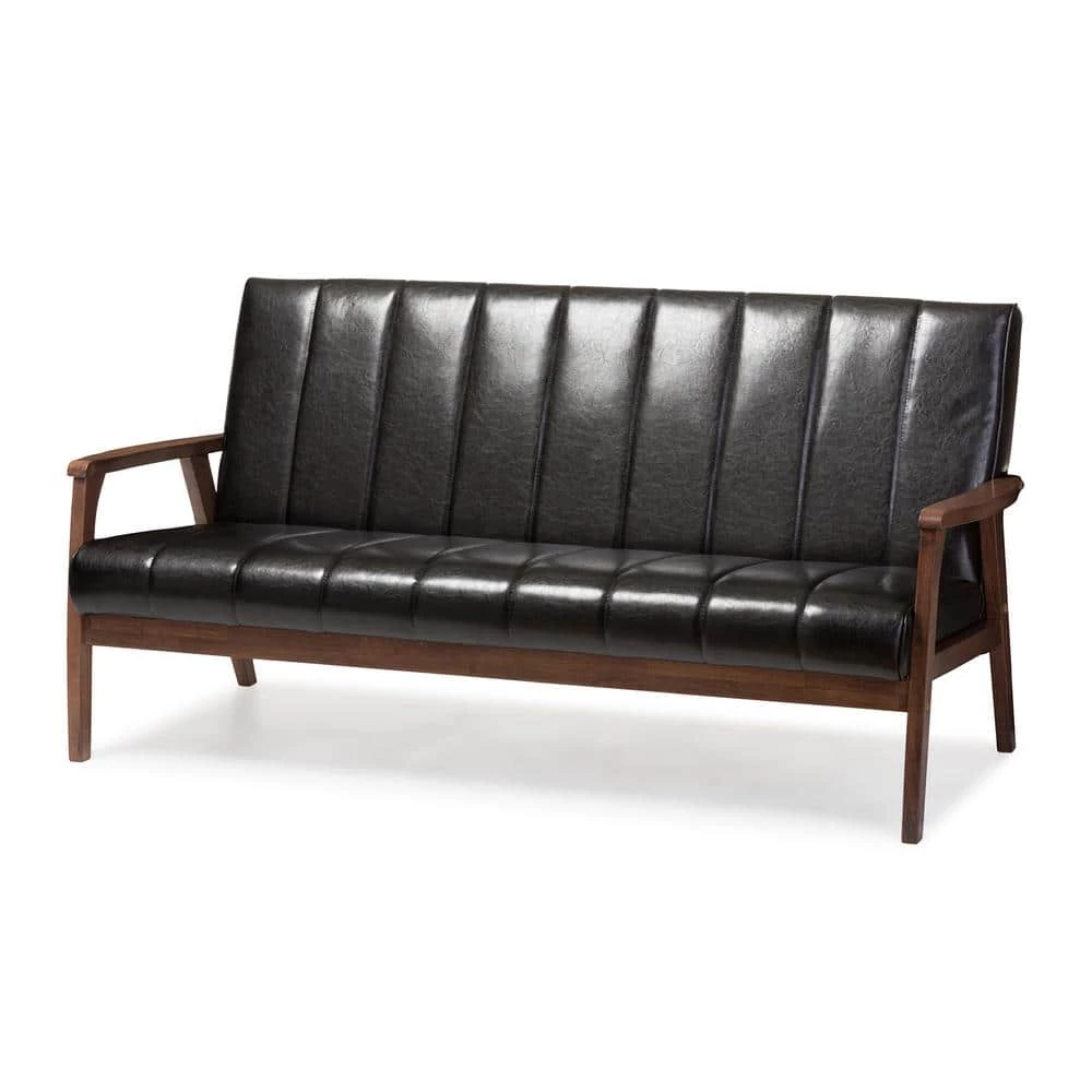 Design your home in style using this Baxton Studio Nikko Standard Sofa. This faux leather standard sofa is perfect for adding a stylish look to any living space. Upholstered with leather, this sofa is tough yet flexible, allowing it to resist punctures. Featuring a mid-century, modern look, it is excellent for beautifully complementing your home interior. It has a rectangular shape and lies straight across the wall.